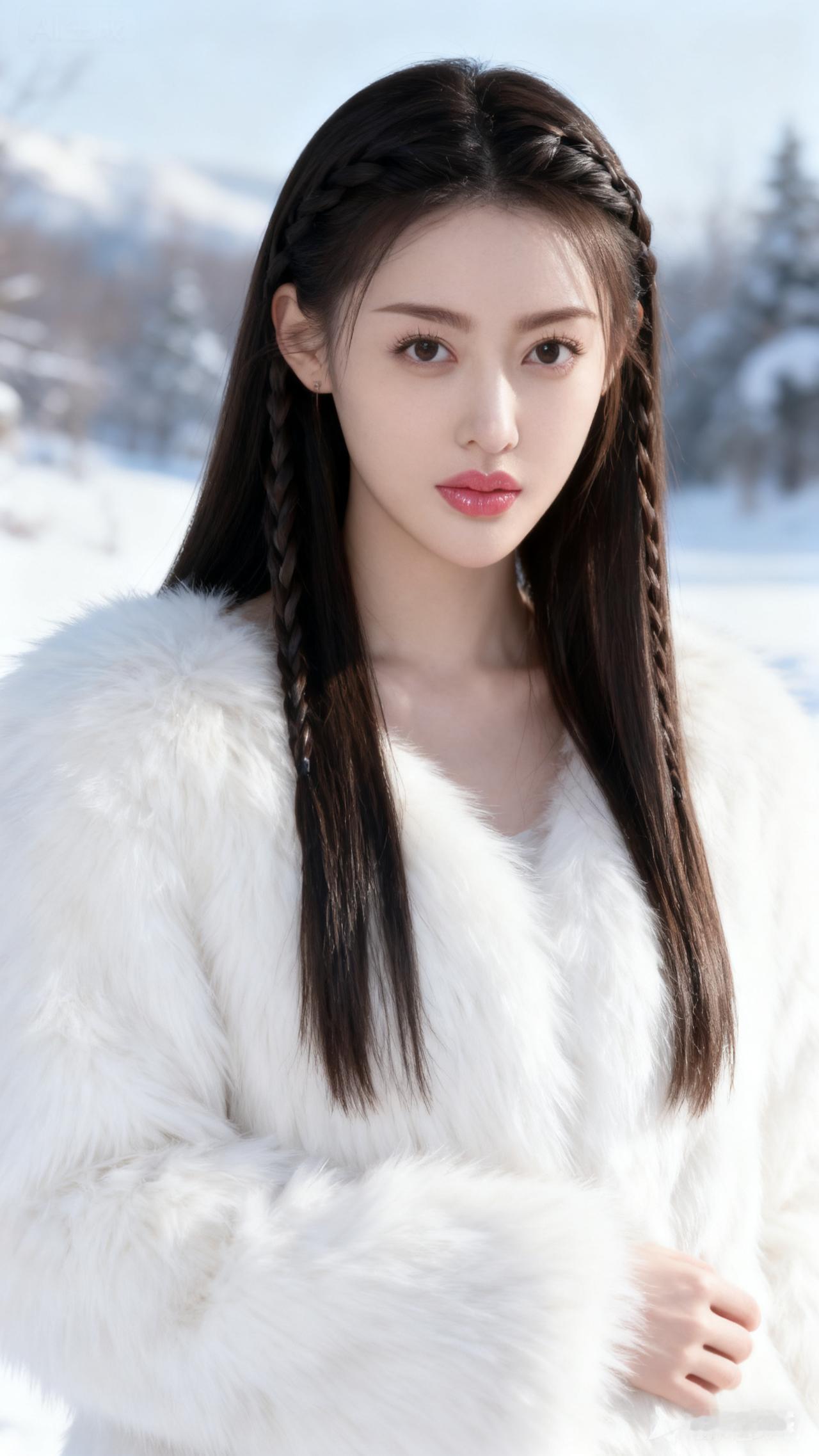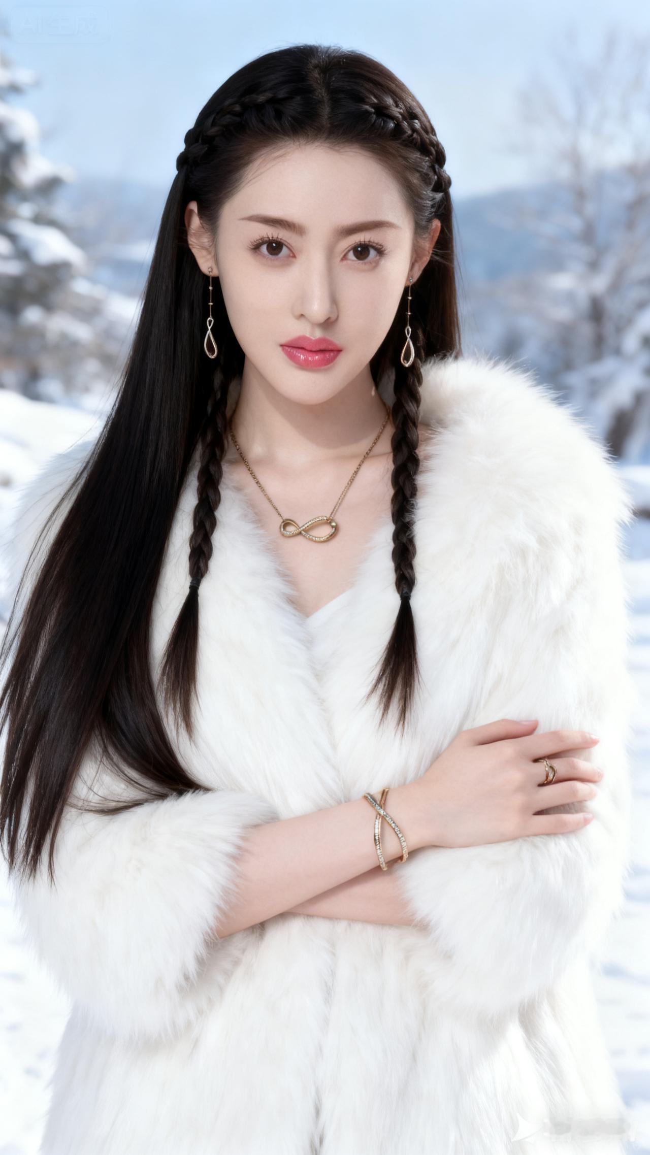 冬日暖阳下的优雅女神,毛茸茸的白色外套,精致的首饰,美不胜收!