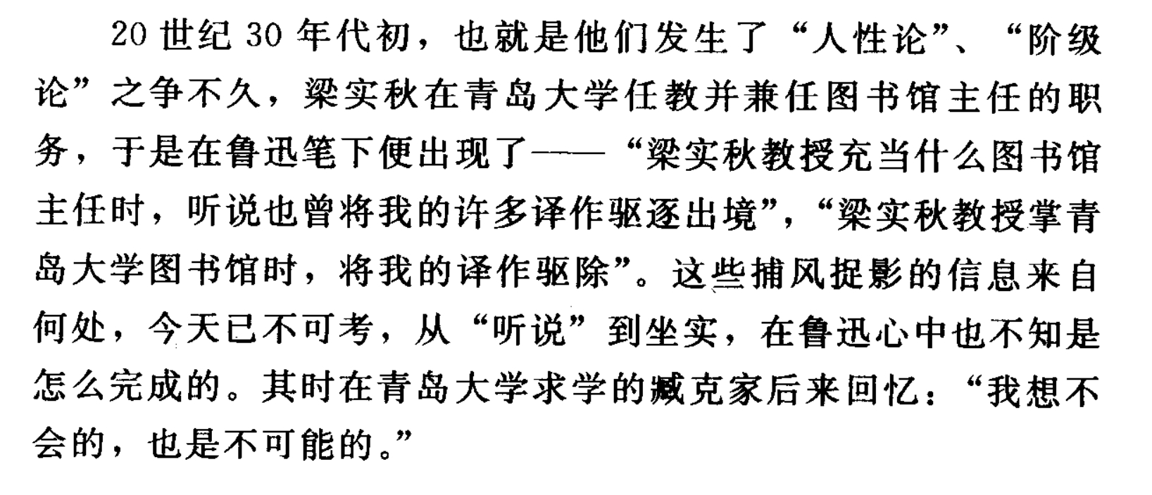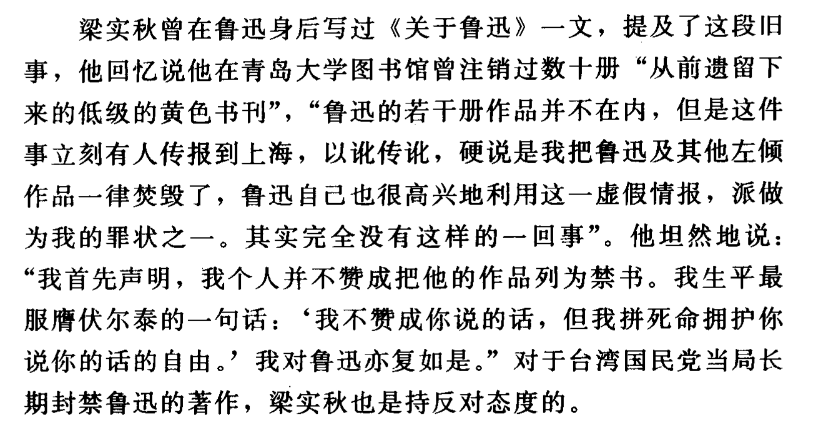 梁实秋辟谣没有在青岛大学查禁鲁迅的作品。