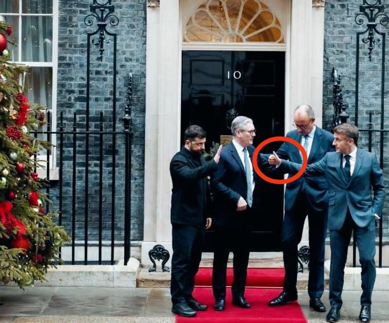 马克龙给泽连斯基伸大拇指的姿势,是什么意思呀? 是给泽连斯基点赞吗? 还是给泽连斯基鼓劲呢? 泽连斯基也挺会来事,抓紧挥手致意啊!