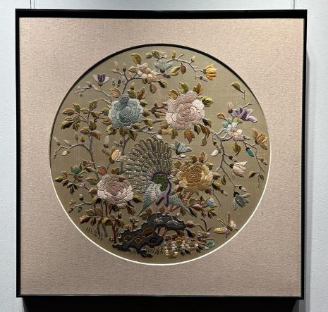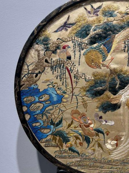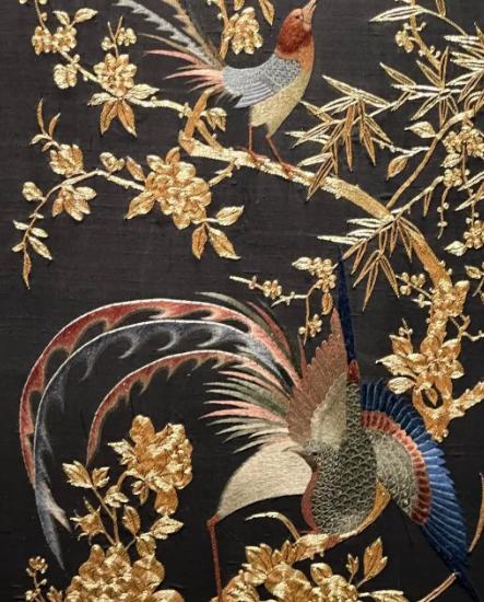 作为中国四大名绣里最“张扬”的一位,粤绣凭着“色彩浓艳、构图饱满”的特点,从明清时就成了宫廷贡品和海外贸易的抢手货。 这背后的门道,全藏在“金银线绣”和“垫绣填充”里,看似是丝线和金银的堆砌,实则每一步都藏着古人的巧思和硬功夫。 先说说“金银线绣”,这是粤绣“金光灿烂”的灵魂,也是它区别于其他绣种的标志性手艺。 粤绣用的金银线,可不是简单把金子银子拉成丝,而是“贴箔缠丝”的精细活。 古代工匠先把黄金、白银捶打成比纸还薄的金箔、银箔,薄到能透光的程度,再把这些箔片小心翼翼地贴在蚕丝线上,然后用细丝线缠绕固定,做成“金葱线”“银葱线”。 更讲究的还会在箔片上压出细密的纹路,比如螺旋纹、水波纹,绣出来的金银线会随着光线转动,闪得更有层次,不像纯金属丝那样呆板。 金银线绣的门道,在于“用线不抢戏,衬色更出彩”,粤绣爱用浓艳的颜色,比如正红、宝蓝、翠绿、明黄,这些颜色单独看容易刺眼,但配上金银线就不一样了。 绣娘会用金线条勾勒图案的轮廓,比如龙的鳞片边缘、牡丹的花瓣纹路,金线像画框一样把色块框住,既让颜色边界更清晰,又中和了浓艳感,让整体显得华贵而不俗气。 比如绣一只孔雀,尾羽用宝蓝、翠绿、绛红的丝线铺满,再用金线绣出每根羽轴的纹路,阳光一照,金线和彩线相互映衬,就像孔雀开屏时的璀璨光泽。 而且金银线绣特别考验“针法力道”。金银线比普通丝线硬,绣的时候不能拉太紧,不然会把面料扯变形,也不能太松,不然线会翘起脱落。 古代绣娘都练得一手“轻挑慢绣”的功夫,用针时指尖发力要匀,让金银线紧紧贴在面料上,针脚还得细密整齐,比如绣直线时,每一针的间距不超过1毫米,绣曲线时,针脚顺着弧度自然弯曲,这样金线条才流畅顺滑,不会出现“打折”的痕迹。 有些高档粤绣还会用“钉金绣”的针法,把金银线用细丝线钉在面料上,形成凸起的线条,既牢固又更显立体,比如绣龙的胡须、凤凰的尾羽,用钉金绣绣出来,根根挺拔,像能摸得着的质感。 再看“垫绣填充”,这是粤绣“构图饱满、立体逼真”的关键,相当于给图案“垫了个海绵”,让平面的刺绣变成立体的浮雕。 垫绣的核心是“分层填充”,绣娘会根据图案的需要,用棉花、绒线或者粗丝线打底,先绣出图案的大致轮廓和厚度,再用细丝线在表面绣出细节,让图案鼓起来,显得饱满有质感。 比如绣一朵盛开的牡丹,绣娘会先在花瓣的位置铺一层薄薄的棉花,用粗丝线固定住,形成花瓣的凸起弧度,然后再用细丝线顺着花瓣的纹理绣,从花瓣边缘的浅粉到中心的深粉,用掺针的手法过渡颜色。 这样绣出来的牡丹,花瓣鼓鼓的,像刚摘下来的一样饱满,摸上去(隔着玻璃都能脑补)有柔软的立体感,不像平面绣那样单薄。 更绝的是绣龙凤的鳞片和羽毛,会用“叠垫绣”,先垫一层薄绒,绣出底层的鳞片,再在上面垫一层更薄的绒,绣出上层的鳞片,层层叠加,让鳞片错落有致,像真的覆盖在龙身、凤羽上,连光影的明暗都能体现出来。 垫绣的学问还在于“厚度控制”,不是垫得越厚越好,而是要根据图案的比例来。比如绣小型花卉,垫得太厚会显得笨拙;绣大型的龙凤图案,垫得太薄又达不到立体效果。 古代绣娘全靠经验判断,比如绣牡丹花瓣,边缘垫得薄一点,中心垫得厚一点,模拟自然的弧度;绣孔雀的尾羽,根部垫得厚,尖端垫得薄,顺着羽毛的生长方向渐变,这样才显得自然逼真。 而且填充的时候,要保证底层的棉花或绒线分布均匀,不然表面绣出来会凹凸不平,影响美观,这就需要绣娘用手指反复按压调整,确保填充层平整服帖。 粤绣的材料也藏着讲究,面料常用真丝软缎、贡缎,质地光滑有光泽,能更好地衬托金银线的闪亮和彩线的浓艳;丝线除了普通桑蚕丝,还会用“绒线”,把蚕丝搓成细绒,绣出来的图案更厚实,颜色也更饱和。 古代粤绣用的染料都是天然的,染红用苏木、红花,染蓝用靛蓝,染绿用蓝草和栀子调和,这些天然染料虽然颜色浓烈,但自带温润感,不会像化学染料那样刺眼,再加上金银线的中和,让粤绣的“浓艳”变得有质感,艳而不俗。 故宫藏的清代粤绣《百鸟朝凤图》,凤凰的尾羽用金线勾勒,每层羽毛都用垫绣填充,层层叠叠像真的展开一样,周围的花鸟用浓艳的彩线绣成,构图满满当当却井然有序,金线在其中起到了“点睛”的作用,让整幅作品华贵又生动。 过去粤绣不仅是宫廷贡品,还是海外贸易的“爆款”,通过广州十三行销往欧洲、东南亚,外国人把它当作稀世珍宝,用来装饰宫殿、制作服饰。 一件精品粤绣往往要几个绣娘花几年时间才能完成,比如绣一幅大型屏风,光金银线就要用好几两,填充的棉花、绒线堆起来能有半尺高,所以才有“粤绣贵比金”的说法。 粤绣,看到的不只是浓艳的色彩和饱满的构图,更看到了古人“敢用色、善用巧”的匠心,全靠双手和智慧,把对富贵吉祥的向往,一针一线绣成了跨越千年的惊艳。
