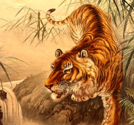 作为中国四大名绣之一,湘绣最绝的就是“以针代笔,以线着色”,而撑起这份灵动的,正是“掺针施色”和“鬅毛针绣”两大绝活。 别觉得是简单的针线活,古人绣一件湘绣精品,光练针法就得好几年,每一针的角度、每一缕线的颜色,都藏着磨出来的真门道。 先说说“掺针施色”,这是湘绣“色随形走,艳而不俗”的核心。湘绣的掺针和其他绣种不同,不追求单一颜色的均匀,反而靠不同色线的“掺合”,让色彩跟着图案的形态自然过渡。 比如绣一片枫叶,从叶尖的深红到叶柄的浅红,再到边缘的橙黄,不会用整根红丝线绣到底,而是把深红、浅红、橙黄三种线交替着绣,针脚相互穿插,像画家调颜料似的,让颜色“融”在一起。 掺针的门道全在“针脚的排布”和“配色的巧思”。 湘绣的掺针分“直掺”“横掺”“斜掺”,绣不同图案用不同针法:绣花瓣用“直掺”,针脚顺着花瓣纹路垂直排列,颜色从中心向外渐变;绣叶片用“斜掺”,针脚斜着交叉,模拟叶脉的走向,让颜色过渡更有立体感;绣山水的云雾则用“横掺”,针脚横向铺开,颜色从浓到淡慢慢晕开,透着朦胧感。 配色上湘绣既大胆又克制,最爱用对比色却不显刺眼。比如绣红牡丹,花瓣用深红掺浅红,花萼却用深绿掺一点墨色,红绿对比强烈却和谐,这是因为掺针时会在红绿衔接处,悄悄加几针浅黄线“过渡”,像给两种颜色搭了座桥。 古代湘绣用的都是天然染料,染红用红花、苏木,染绿用艾草加蓝草,染黄用栀子,这些染料染出的线自带温润质感,再经掺针调和,颜色就更显鲜活。 更绝的是“随光施色”,绣人物时,会根据光线角度调整色线:面部受光处掺浅粉线,背光处掺淡棕线,连颧骨的红晕都用极细的粉线轻点,比画的还自然。 要是说掺针是“着色高手”,那“鬅毛针绣”就是湘绣的“动物专属绝技”,尤其是绣虎、狮这类带毛的瑞兽,没有它就出不了“活灵活现”的效果。 “鬅毛”听起来就像“蓬松的毛”,这针法的精髓就是用长短不一的针脚,模拟毛发的生长规律,绣出蓬松又立体的质感。 别小看这针法,光练“起针落针”就得半年。绣的时候,先得观察动物毛发的走向,比如老虎的背毛是顺着脊柱向两侧散开,腹部的毛是向下垂的,尾巴的毛是环形生长的。 然后用镊子夹着细丝线,在面料上起针时稍用力,让线尾“藏”在面料里,落针时针脚要短,大概两三毫米,而且针脚要“错着排”,像鱼鳞似的相互叠压,不能整齐划一地排列,不然毛就显得僵硬。 更讲究的是“粗细搭配”和“疏密控制”。绣动物的粗毛,比如老虎的背毛,用稍粗的丝线,针脚稍长且密,让毛显得厚实;绣绒毛,比如老虎的腹部或幼兽的皮毛,用劈成16股的细丝线,针脚短且疏,轻轻挑绣,透着通透感。 清代有幅湘绣《虎啸图》,老虎的额头横纹用深棕线粗针脚绣,眼角的绒毛用浅棕细线挑绣,连胡须都用半透明的蚕丝线,针脚细得像蛛丝,远看就像真老虎瞪着眼睛咆哮,气势十足。 而且鬅毛针绣还能“藏色”,比如绣花豹,会在黄褐色的针脚里,悄悄掺几针极细的黑色线,模拟花豹的斑点,这些黑色线不是整整齐齐绣成圆点,而是顺着毛发生长方向“散”开,像天然的斑点嵌在皮毛里,比直接绣圆点更逼真。 绣孔雀尾羽时,还会在丝线里掺一点细金线,用鬅毛针挑绣,阳光一照,金线的光泽顺着针脚散开,像尾羽上的眼状斑在发光。 湘绣的门道还藏在“材料”里。丝线得用湖南本地的桑蚕丝,先经过“熟丝”处理,蒸煮脱胶后,丝线更柔软有光泽,还不容易褪色。 绣动物常用“绒线”,是把桑蚕丝搓成细绒,比普通丝线更蓬松,绣出来的毛质感更真实。 面料多选真丝软缎或贡缎,质地光滑细腻,能让色线的光泽更好地展现,比如绣孔雀时,软缎的光泽会和丝线的颜色呼应,让尾羽的蓝绿渐变更灵动。 古代湘绣工匠都是“眼高手巧”,不仅要会绣,还得会观察生活,绣虎前要去看真老虎,记清皮毛的纹路和颜色变化;绣孔雀要蹲在院子里看开屏,留意尾羽的光泽怎么随光线变化。 过去湘绣是富贵人家的宝贝,一件绣着瑞兽的湘绣屏风,得几个工匠花一两年才能完成,比普通绸缎贵十倍不止。 宫里的贡品更讲究,绣龙袍上的龙鳞,用掺针施色绣出金红渐变,龙的胡须用鬅毛针挑绣,连龙爪的鳞片都分三层针脚,透着威严。 如今机器能仿出湘绣的图案,却仿不出手工的“灵气”,掺针时那抹恰到好处的颜色过渡,鬅毛针绣时随毛发走势的自然针脚,都是机器复刻不了的匠心。