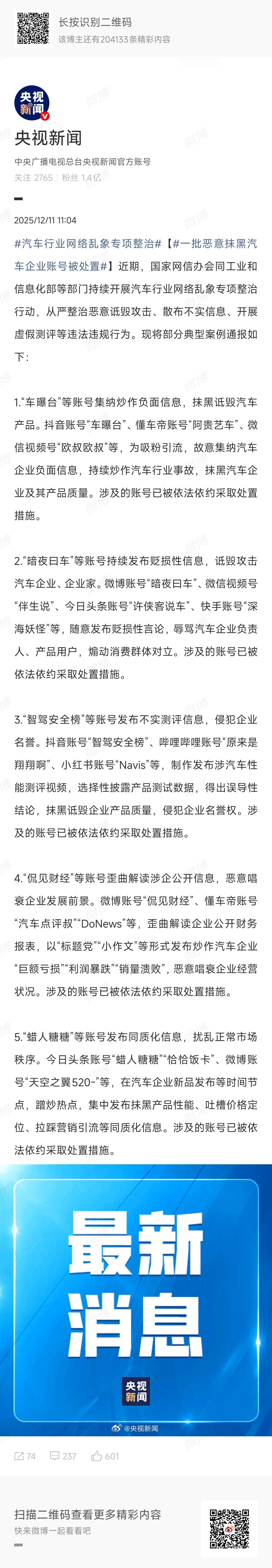 又一批账号被处置一批恶意抹黑汽车企业账号被处置