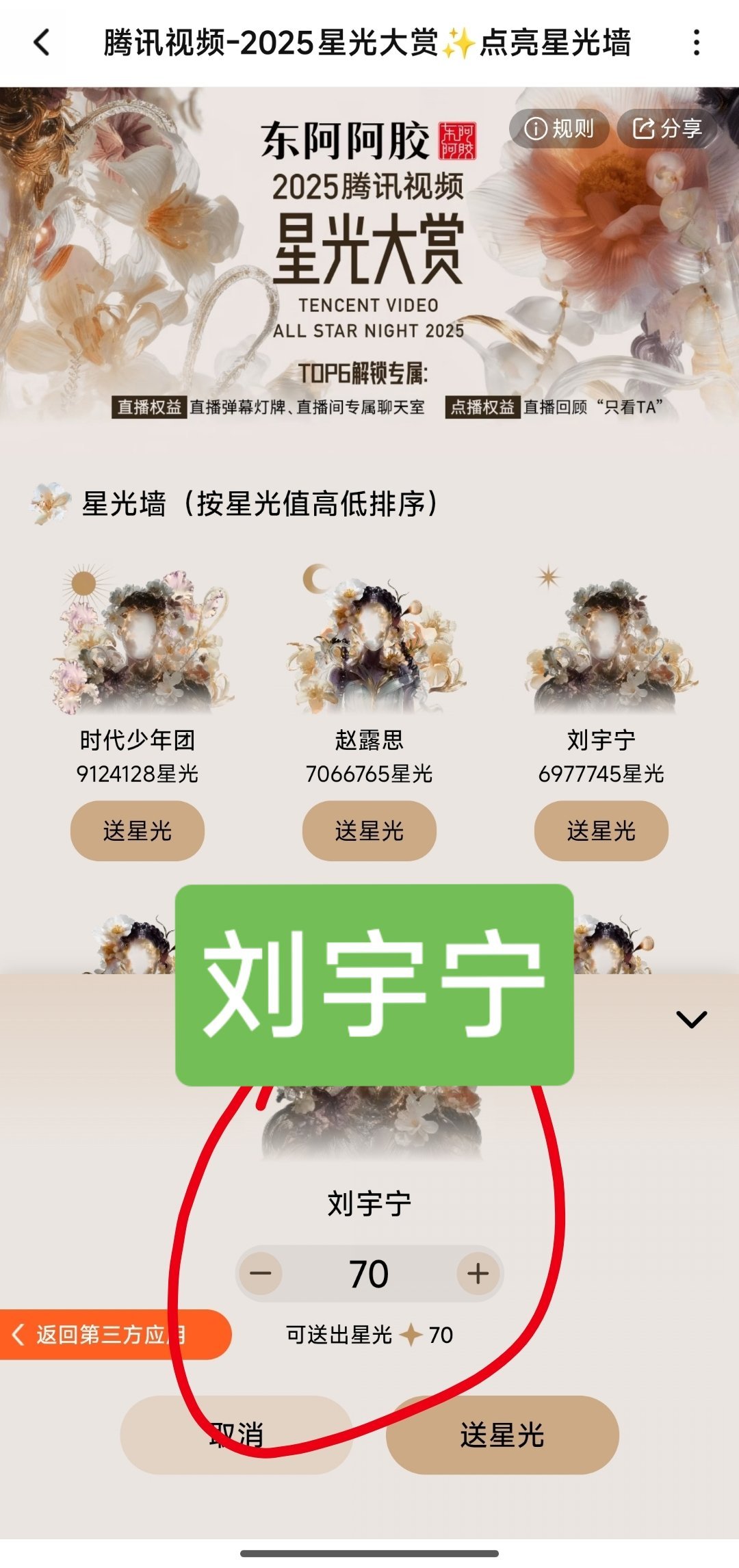 近期两个任务——❶星光大赏刘宇宁投票。❷微博之夜,迪丽热巴投票。