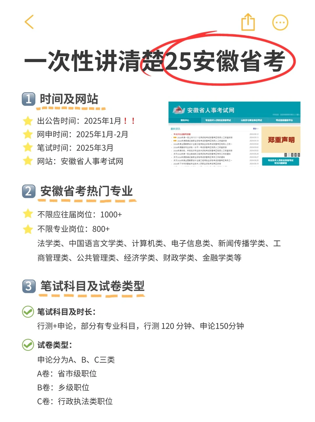 考公考编的朋友看这里!!安徽省考大概是2025年1月发布公告,3月进行笔试,网站是安徽省人事考试网