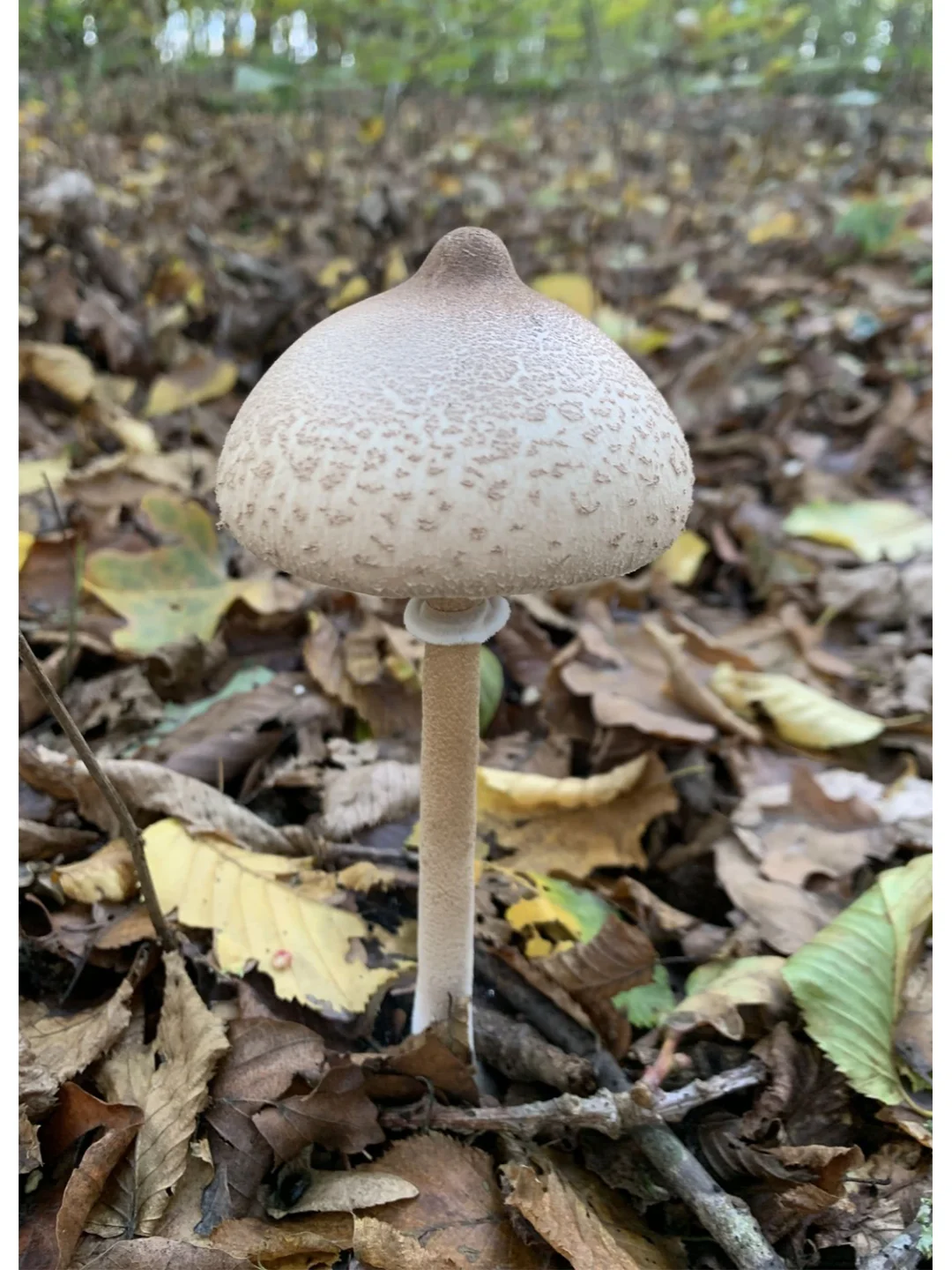 🌲 生长环境:乳突状大环柄菇,学名Macrolepiota mastoidea,是一种在温带地区森林中常见的真菌。它们通常在夏末至秋季的湿润环境中生长,尤其是在富含钙质的林地和草地上。