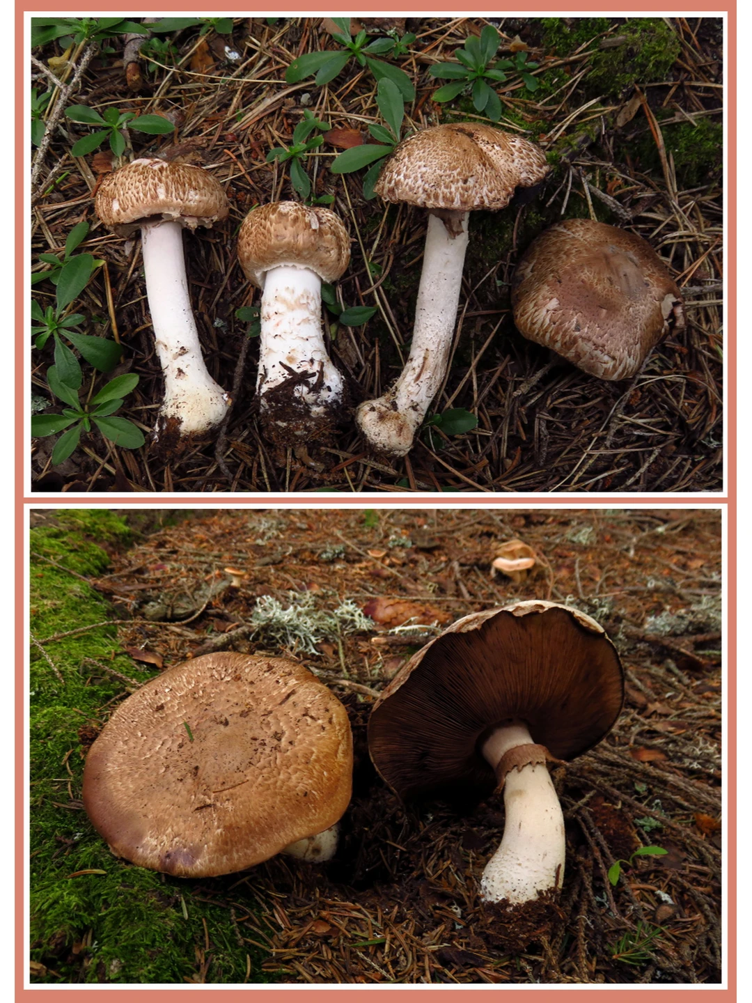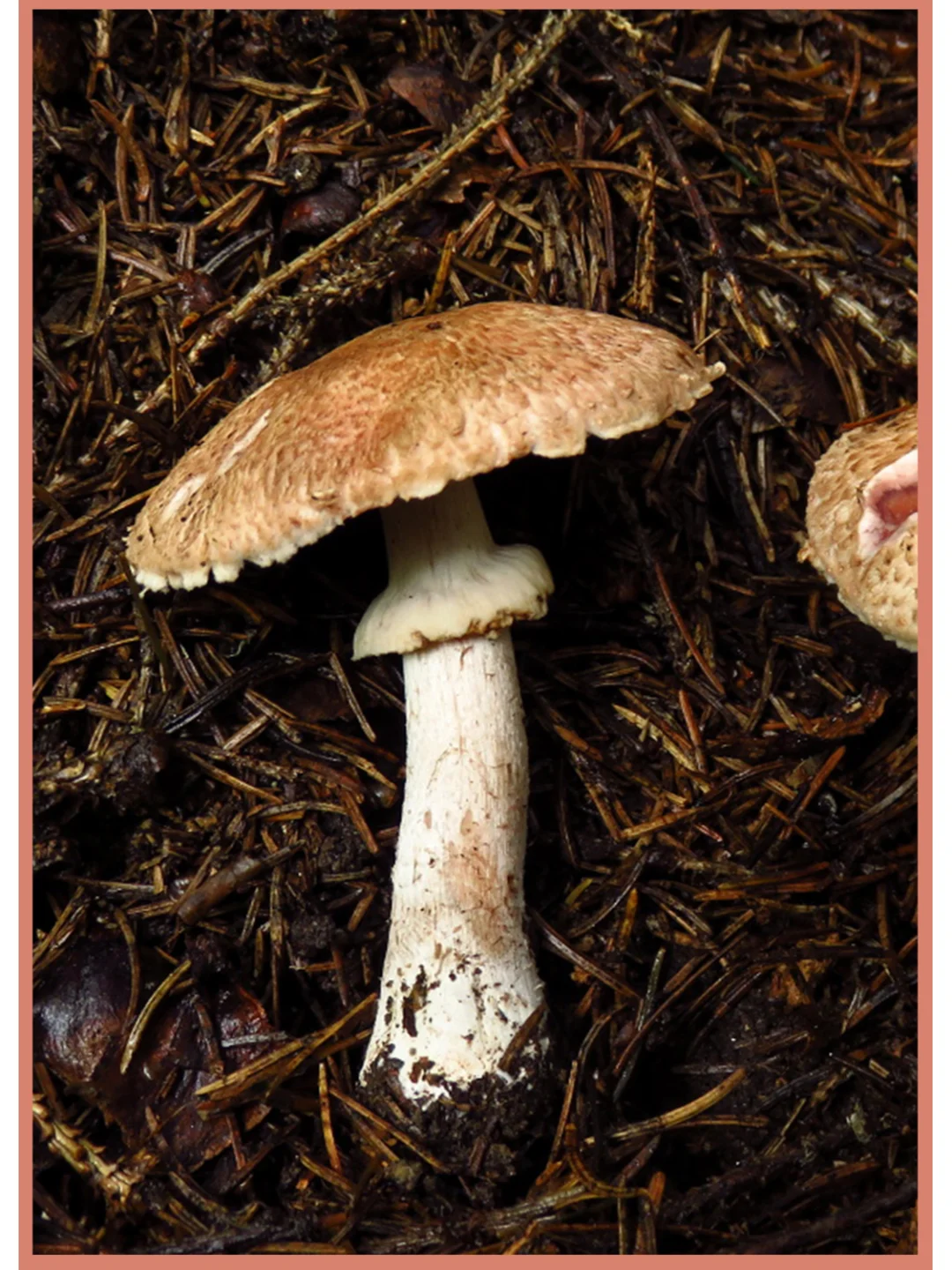 红脸林生蘑菇 Agaricus sylvaticus 学名:林地蘑菇 科:蘑菇科 图片©manatarka.org ©josef hlasek 可食 菌肉呈白色,伤后变成红[害羞R] 菌盖表面被褐色细纤丝,菌盖中间呈深褐色 菌褶呈浅灰色,后变玫瑰粉色,最后变成巧克力褐色
