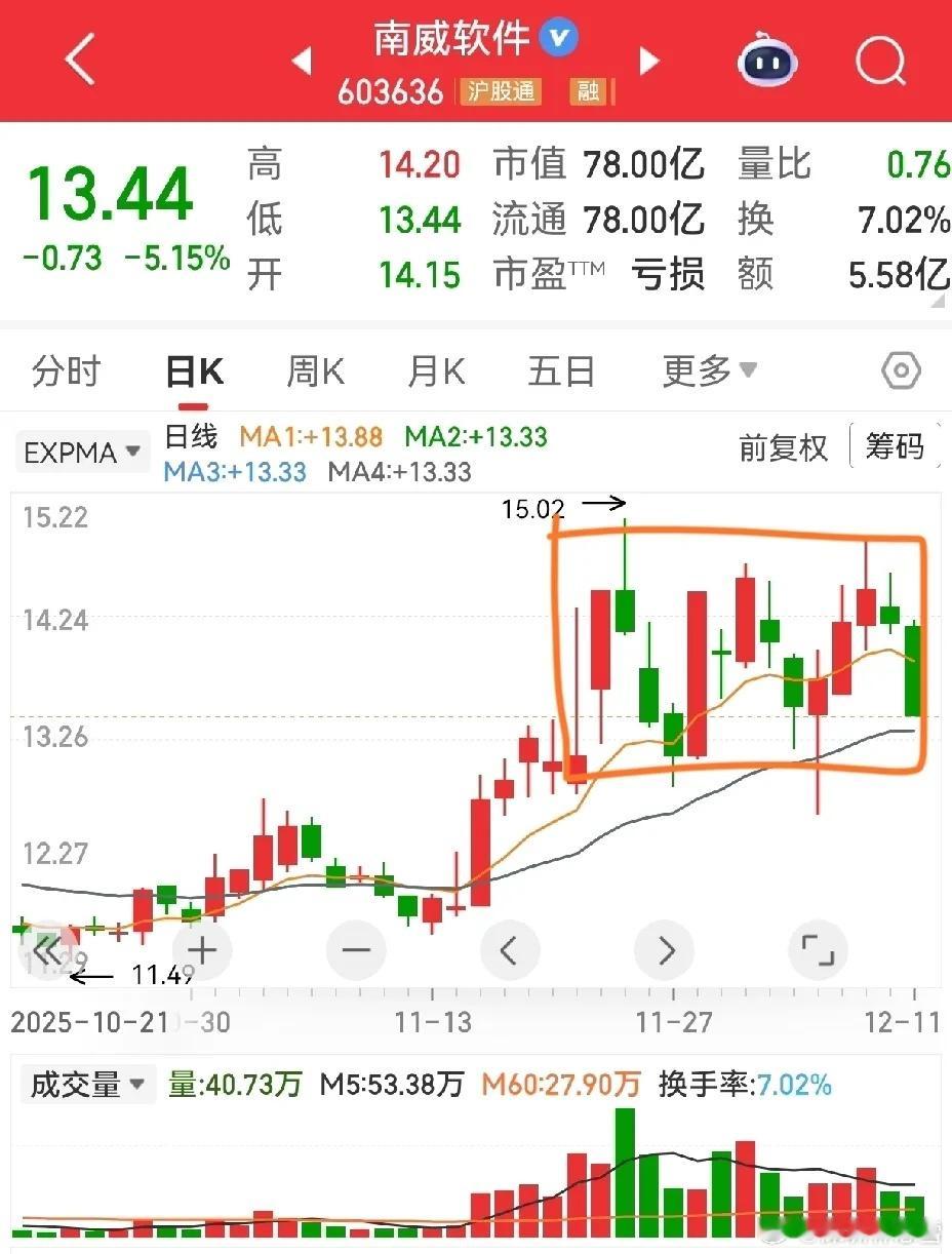 箱体震荡怎么看?南威软件、东方嘉盛、合金投资实操感悟有朋友问南威软件,目前就是清晰的箱体整理,上下沿一目了然,只要不跌破箱体+上移的第二道生命线,把握节奏就行。东方嘉盛也是同款箱体震荡,跟着趋势走准没错。至于合金投资,今天是真犹豫了!明明之前已经突破箱体,本以为能继续上行,结果今天大跌回踩箱体底端,到底是假破位还是真调整?犹豫间就没及时卖出,也算给自己提个醒:买错是错,卖晚了也是错啊!