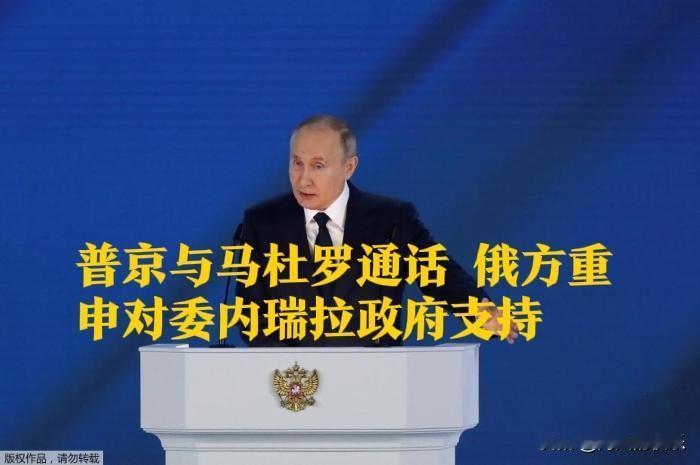 普京与马杜罗通话 俄方重申对委内瑞拉政府支持 据外媒俄罗斯卫星通讯社报道,克里姆林宫新闻局通报称,俄罗斯总统普京与委内瑞拉总统马杜罗于11日通电话。 克里姆林宫新闻局发布消息说:“12月11日,俄罗斯总统普京与委内瑞拉总统马杜罗通话会谈。双方重申,将坚定推进经贸、能源、金融、文化人文等各领域合作项目。" 克里姆林宫新闻局还称,普京对委内瑞拉人民表示声援,并重申支持马杜罗政府在外部压力日益增大的情况下维护国家主权和利益的政策。