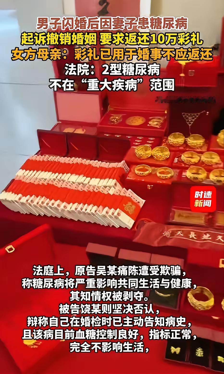 这起案件涉及婚姻法中的“重大疾病告知”原则以及婚姻财产与权益的法律界定。以下是对案件的分析和看法: 关于“重大疾病”的认定: 法院根据《民法典》第1053条规定,认定“重大疾病”通常涉及影响婚姻决策、危及后代健康或剥夺生活自理能力的严重疾病。 二型糖尿病作为常见的慢性疾病,只要血糖控制良好,生活基本正常,不属于法律所认定的“重大疾病”范围。 如果饶某在婚检时已如实告知了糖尿病情况,并符合血糖控制正常等条件,她并无隐瞒行为。 关于“隐瞒”行为: 在婚姻法律关系中,婚前的健康告知应如实进行。饶某已在婚检中告知自己的患病情况,属于诚实告知。 仅因患有糖尿病,且血糖控制良好,不能以“隐瞒重大疾病”论断其婚姻无效。 关于彩礼: 彩礼用途多为婚礼準备、家庭生活开支,未明确约定返还条件。 根据司法实践,彩礼在未发生婚姻无效或撤销的情况下,一般不应退还。 此案中,法院停止追究彩礼退还责任,支持了饶某方面的主张。 性格与信息披露: 饶某已在婚检中披露了疾病情况,男方如感信息不足,应在婚前充分沟通。 事件反映出匆忙婚姻带来的沟通不充分和情感披露不足,提醒人们在婚前坦诚沟通的重要性。 法官的判决合理性: 法院基于法律规定,认定糖尿病不属于“重大疾病”,拒绝男方的婚姻无效请求。 裁决符合现行法律和司法解释,有助于维护法律的权威性和公平。 总结: 这起案件体现了婚前健康信息披露的法律责任和界限,也提醒年轻人慎重对待婚姻中的沟通与决策。婚姻应以坦诚为基础,避免因小误会或信息不充分引发财产和感情纠纷。同时,法律对于“重大疾病”的界定也应理性对待,避免因慢性疾病影响正常生活而成为婚姻解散的唯一依据。 您是否期待更详细的法律分析,或对案件的情感与社会层面有深入探讨?婚姻法律差异 保险重大疾病