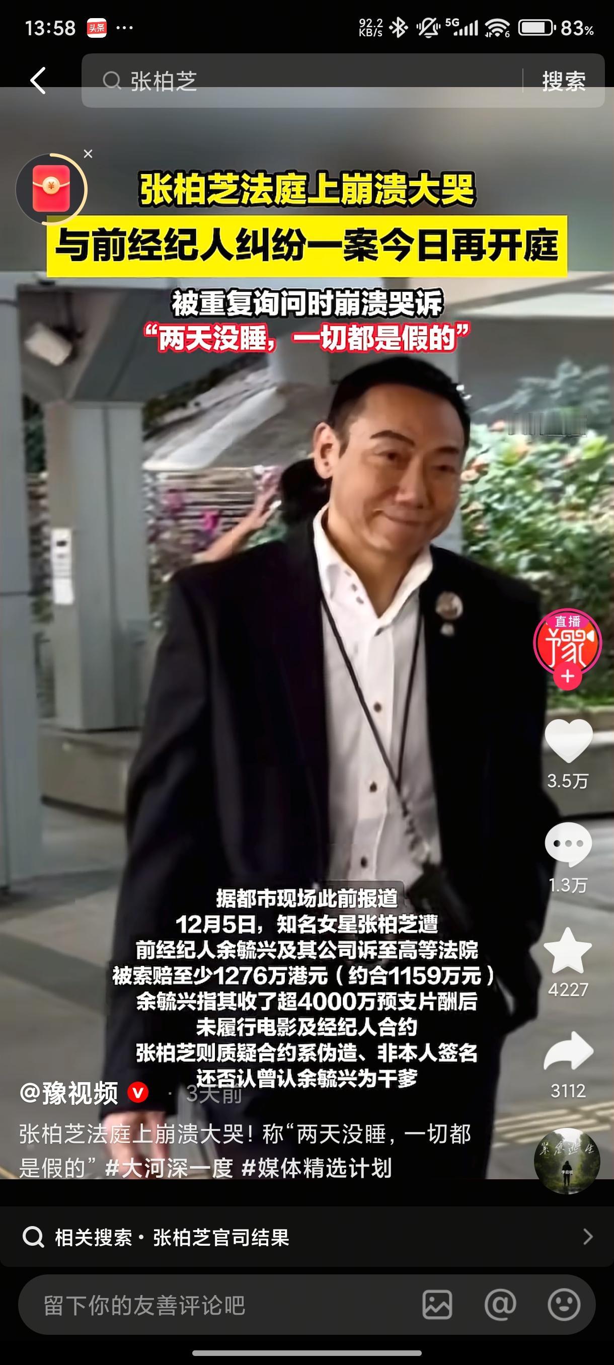 这下彻底说不清楚了, 张柏芝和余毓兴各有各的大瓜,一边说张柏芝没有契约精神,而另一边说余毓兴早十多年在合同上做了手脚,张柏芝虽然早就知道这事,但最终也心慈手软下来了。 余毓兴那边的瓜是,早在2014年,张柏芝就知道余毓兴合同造假,对他要求解约。 柏芝在庭审上说过:我“念在他儿子和妻子都年轻,而且他有癌症,我宽恕他到今天这一刻” 在柏芝的视角上,是余毓兴合同造假,迫使柏芝继续为他打工,继续薅柏芝的羊毛,现在凭借柏芝自己的名气,就算自己单干,也是有无数的人追着和她合作,余毓兴就恨不得一直绑着柏芝,后路才能走得更广。 而张柏芝的瓜是,被人说收了签约费而又不工作,现在她经常直播,工作轻松,拍电影拍电视剧多辛苦。另一头,柏芝又被曝在导演圈、影视圈名声不好,不仅曾闹翻三个经纪人,还得罪曾经支持她的向太。不仅如此,柏芝近年参加繁花也因到处串场子惹人争议。 真是公说公有理婆说婆有理,事情的真假只能由法庭根据证据判断了。 不过就凭香港房屋火灾一事,张柏芝捐款救灾,就能够看出来她本性应该是好的,希望法庭早晚有个公正的判决,给公众一个真相。