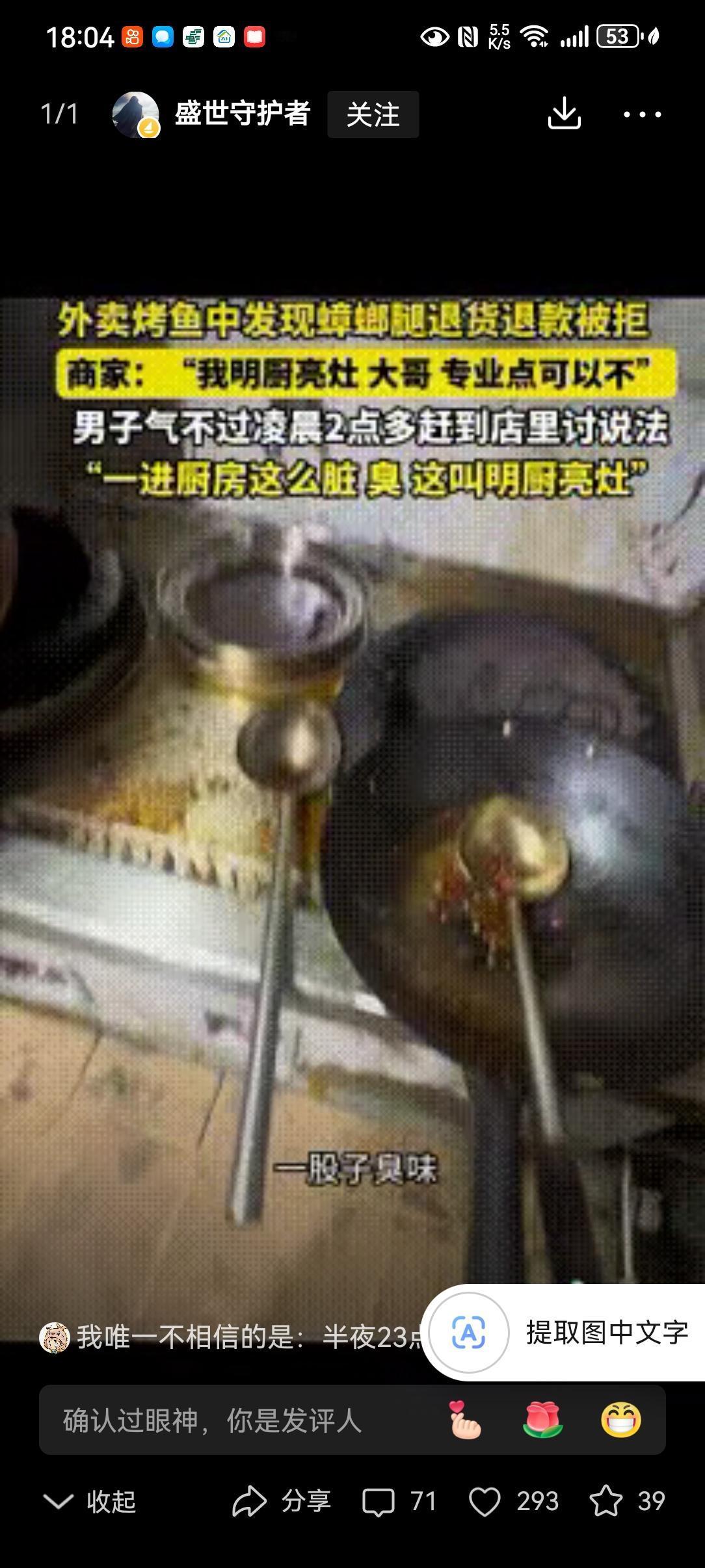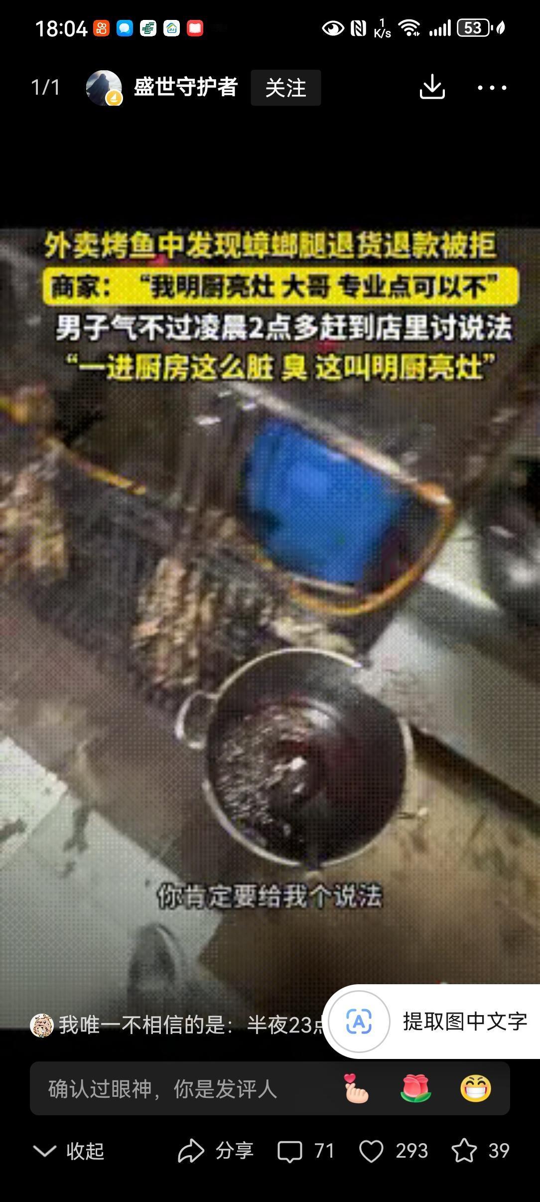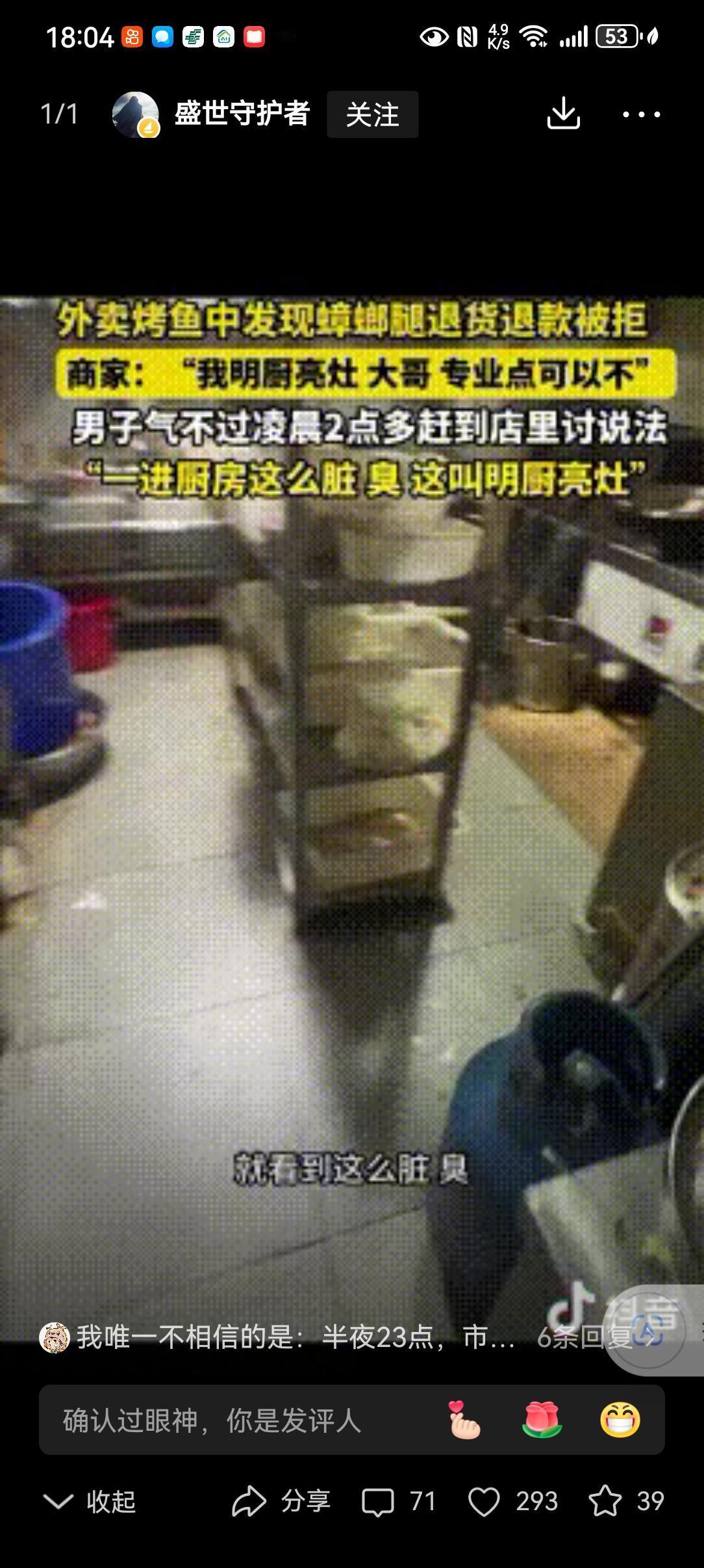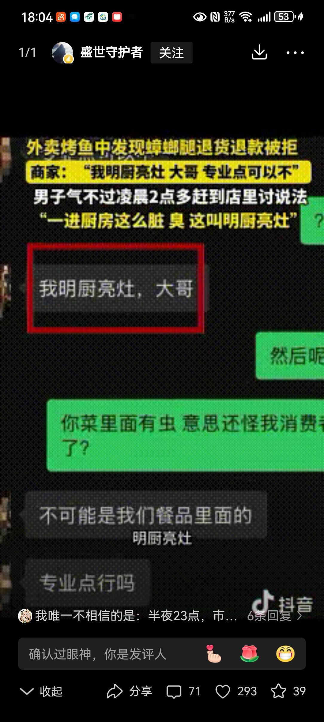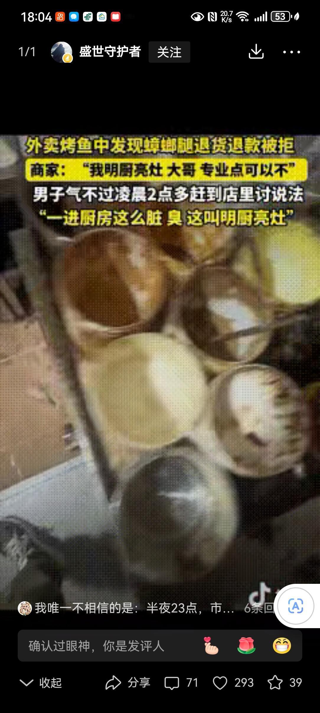 “专治嘴硬!”贵阳一男子半夜点了一份外卖烤鱼,打开发现有一条蟑螂腿,大哥没想为难商家,就给商家发信息退款就行了,谁知商家竟不承认,称:“我明厨亮灶,专业点可以不!”结果,男子气不过,半夜赶到店里讨说法,到后厨一看,直接傻眼了! 大半夜的烤鱼里吃出蟑螂腿,换谁不膈应?贵阳这位大哥没喊没闹,只想着退个款了事,偏偏遇上嘴硬的商家。 一句“明厨亮灶,专业点可以不”,直接把好好说话的人惹毛了。这哪是道歉,分明是倒打一耙,把消费者当成碰瓷的无赖。 大哥也是个较真的性子,当晚十一点多,揣着外卖订单和照片,驱车直奔烤鱼店。深夜的街道空荡荡,他心里就一个念头:你说干净,我偏要亲眼看看。 店里还有几桌客人在吃饭,店员见他找上门,张口就说后厨不让外人进。大哥冷笑一声,掏出聊天记录亮出来:“不是明厨亮灶吗?怎么还怕人看?” 这话一出,店里的客人都围了过来,七嘴八舌地指责商家心虚。店员被问得哑口无言,只能慌慌张张联系店主。 店主赶来时,脸色铁青,磨磨蹭蹭地打开了后厨的门。门一推开,一股混杂着油污和霉味的腥气扑面而来,在场的人瞬间傻眼。 哪有什么明厨亮灶?操作台上的油垢积得发黑发黄,厨具扔得到处都是,菜渣子黏在上面硬邦邦的。墙角的食材筐沾着不明污渍,敞口的配菜盒子里,细小的虫子爬得到处都是。 更让人作呕的是,烤好的鱼直接摊在地上的塑料布上,碎屑撒了一地,墙角还有蟑螂飞快地窜过。这哪是做饭的地方,分明是藏污纳垢的垃圾场。 店里的客人当场就炸了锅,纷纷放下筷子往外走,嘴里骂着再也不来了。大哥没多说一句话,举着手机把这乱象拍了个遍,转头就拨通了市场监管的电话。 店主这时候才慌了神,又是道歉又是赔钱,说愿意三倍退款,只求大哥撤销投诉。可大哥只说了一句:“你们这后厨,要害多少人?必须查!” 市场监管的人来得很快,不到半小时就到了现场。一查一个准,卫生严重不达标,食材储存违规,消毒流程更是全无,当场就下了停业整顿的通知。 没过两天,处罚结果下来了,这家店被吊销了经营许可,彻底关门大吉。店主悔得肠子都青了,可世上哪有后悔药? 这事传到网上,网友们的态度出奇地一致:解气!有人说“专治嘴硬商家”,有人说“餐饮卫生就该零容忍”。 这话一点不假。做餐饮的,后厨干净才是立身之本,一句傲慢的辩解,比一条蟑螂腿更让人寒心。你把消费者当傻子,消费者自然会让你关门歇业。 那些打着“明厨亮灶”旗号的商家,别把口号当成挡箭牌。真金不怕火炼,干净的后厨,从来不怕人看。 消费者遇上这种事,也别忍气吞声。该留证据留证据,该投诉就投诉,你的一次较真,就是在守护千万人的餐桌安全。 嘴硬赢不了道理,干净才能留住生意。这话,值得所有餐饮人记在心里。