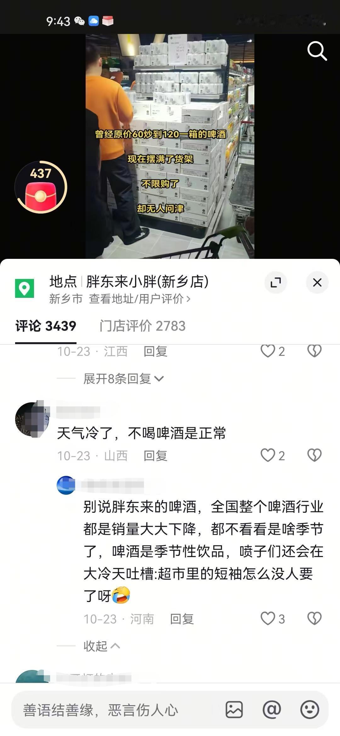 当胖东来老款啤酒滞销时,胖东来粉丝会说到了冬天了,没人会买啤酒喝,当胖东来出新款比利时啤酒后,胖东来粉丝说法则完全变了。 夏天的时候胖东来老款啤酒非常畅销,很多人想买也买不到,而且超市每人限购,不过不少代购手里却囤了不少。 到了冬天的时候,胖东来老款啤酒开始不限购了,货架上也满了,代购手里卖不出去了。 胖东来粉丝说,冬天太冷了,谁还会喝啤酒,都喝白酒去了。 结果胖东来新款比利时啤酒冬天上市了,现在又开始出现限购,很多人抢不到的情况,而有些代购也开始囤新款啤酒了。 我很好奇,曾经的老款啤酒,是因为冬天了大家不喝,所以才导致滞销,而新款啤酒却在冬天抢不到,需要限购,这究竟是什么原因呢?