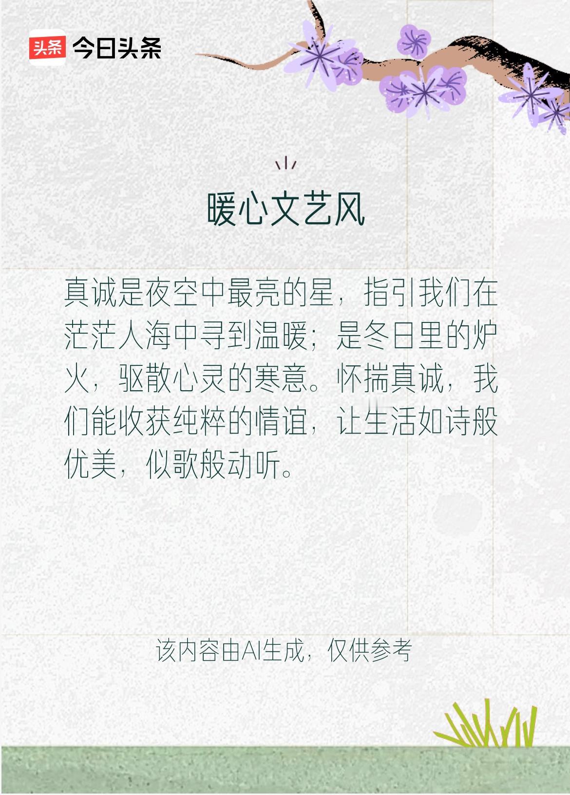 易碎的糖 作者:墨琴 云掏出一颗心 捧到风的面前 却被当作筹码 掂量 要再换些什么 草木接住 小心翼翼揣进怀里 用五分温暖 还云十分光芒 把真诚 酿作双向奔赴的糖 风来了 碾碎星光 以为怯懦便是退让 以为真诚就是廉价 当贪念疯长 傲慢爬上高墙 云的郑重 成了风脚下的尘土飞扬 原来啊 不是所有的灵魂 都配得上赤诚 就像贫瘠的土地 养不出温柔的花 文学创作大会:真诚是夜空中最亮的星,指引我们在茫茫人海中寻到温暖;是冬日里的炉火,驱散心灵的寒意。怀揣真诚,我们能收获纯粹的情谊,让生活如诗般优美,似歌般动听。 戳这里👉和我一起作诗词歌赋,赢万元大礼~