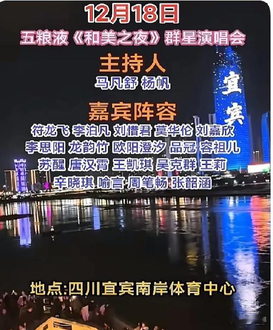 宜宾和美之夜,这场群星盛宴太值得期待,宜宾的游客们,你们喜欢吗? 12月18日,五粮液《和美之夜》群星演唱会将在四川宜宾南岸体育中心开唱! 央视总台与五粮液联手打造的视听盛宴,马凡舒、杨帆坐镇主持,张韶涵、容祖儿、吴克群、周笔畅、品冠、苏醒等实力歌手齐聚,从经典金曲到热门单曲,舞台魅力直接拉满~ 宜宾的朋友,准备好奔赴这场冬日里的音乐狂欢了吗?🎤 网眼看宜宾