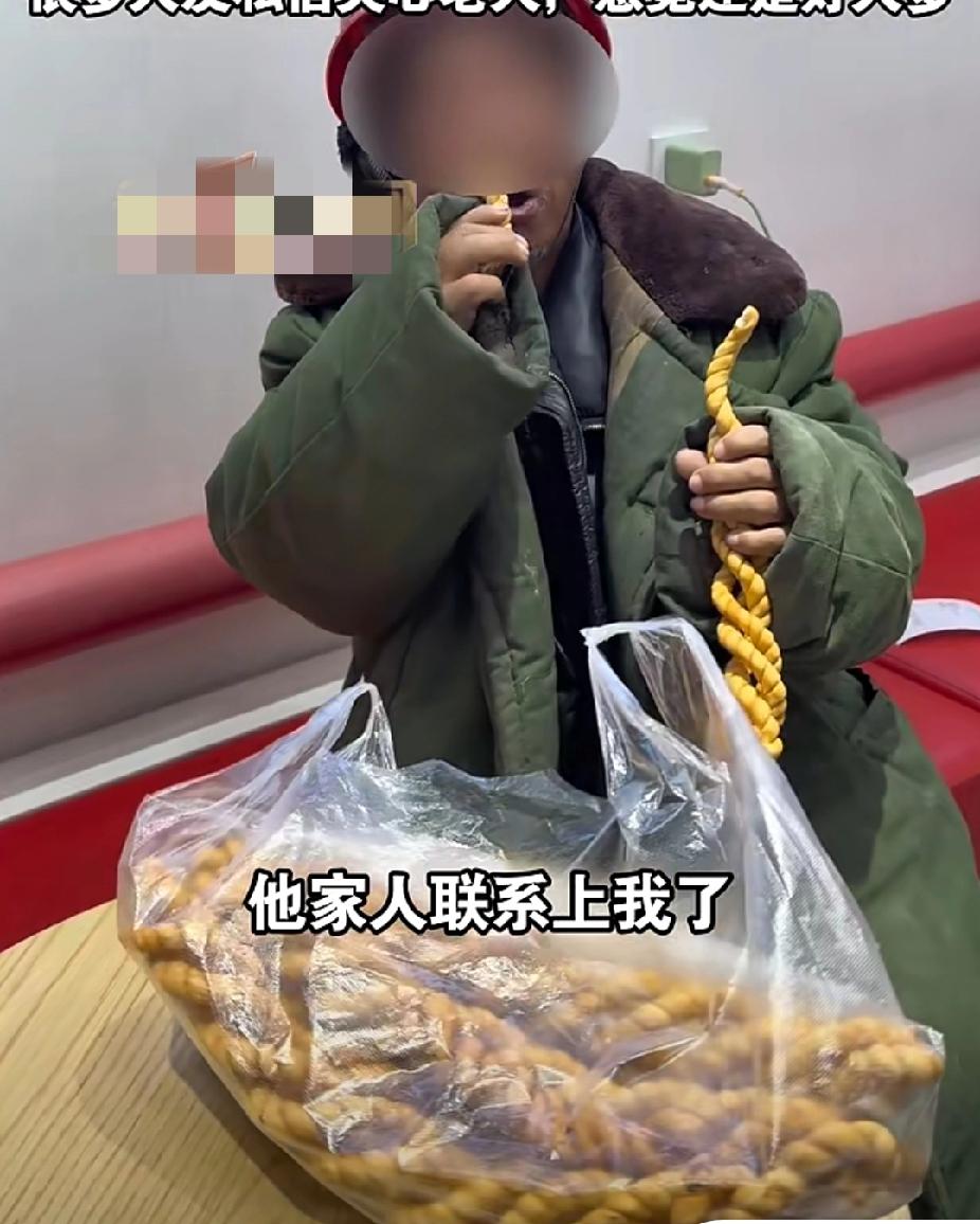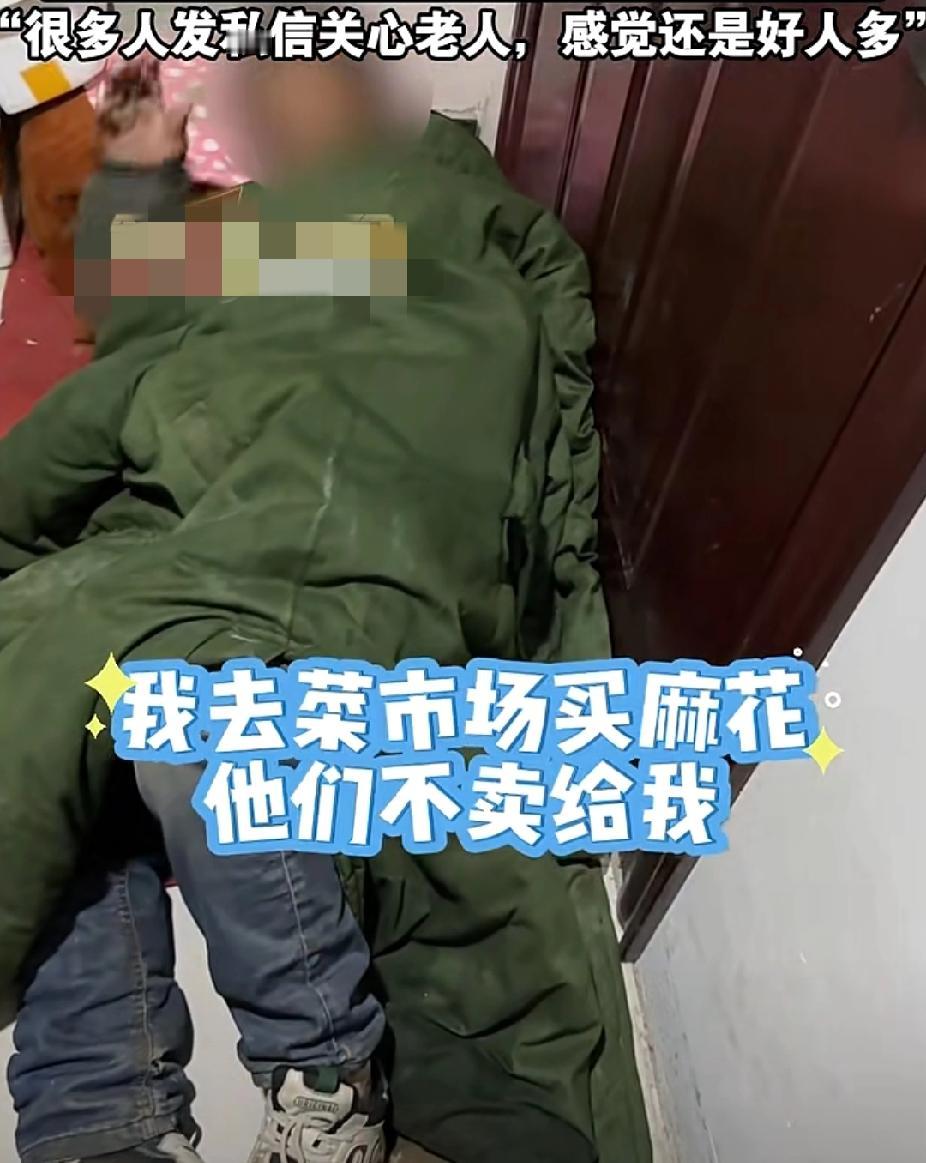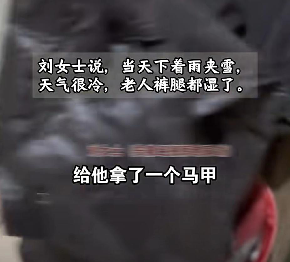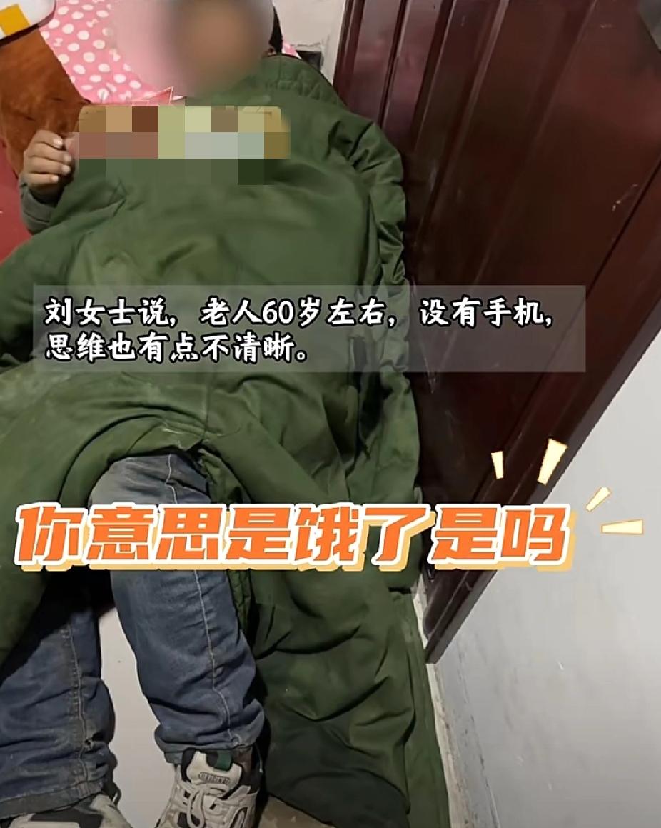 12月13日,山西运城的刘女士一大早打开门发现门口躺着一陌生男子,刘女士吓了一跳。询问:“你是干嘛的?” 男子穿着军大衣,将自己盖得严严实实,听到有人说话便缓慢起身。刘女士这才看清是一位老人。老人说:“我到菜市场买麻花他们不卖给我。” 刘女士觉得老人答非所问,但随即刘女士便领会到了老人表达的意思,于是说道:“你的意思是你饿了是吗?” 老人点点头,嘴里嗯着。刘女士便转身回家热了一个馒头,又拿了一根香蕉给老人。 刘女士说,老人60岁左右,没有手机,思维有些不太清晰。 吃完东西后,老人说冷,刘女士一看老人的裤腿都湿透了。于是刘女士又给老人拿了一个马甲和一条裤子,老人换完衣服后,刘女士便去菜市场帮老人买麻花,回来后却发现老人已经离开! 刘女士将视频发到网上,帮老人寻找家人,有网友评论:“看到了这个老人,就在哪里哪里坐着。”网友说的位置很具体,刘女士便将麻花又去送给了老人,老人吃的很开心。 事后,老人的家人通过刘女士的视频找到了刘女士,将老人带回了家。之后不断的有网友给刘女士发私信关心老人的情况,刘女士不禁感叹:“还是好人多啊!” 善良的刘女士在看到老人的一瞬间没有因为害怕而驱赶老人,而是关心老人饿不饿、冷不冷,甚至还帮助老人买想吃的麻花,帮助老人寻找家人。刘女士的善举为老人带来了温暖,让我们为善良的刘女士点赞! 走失老人