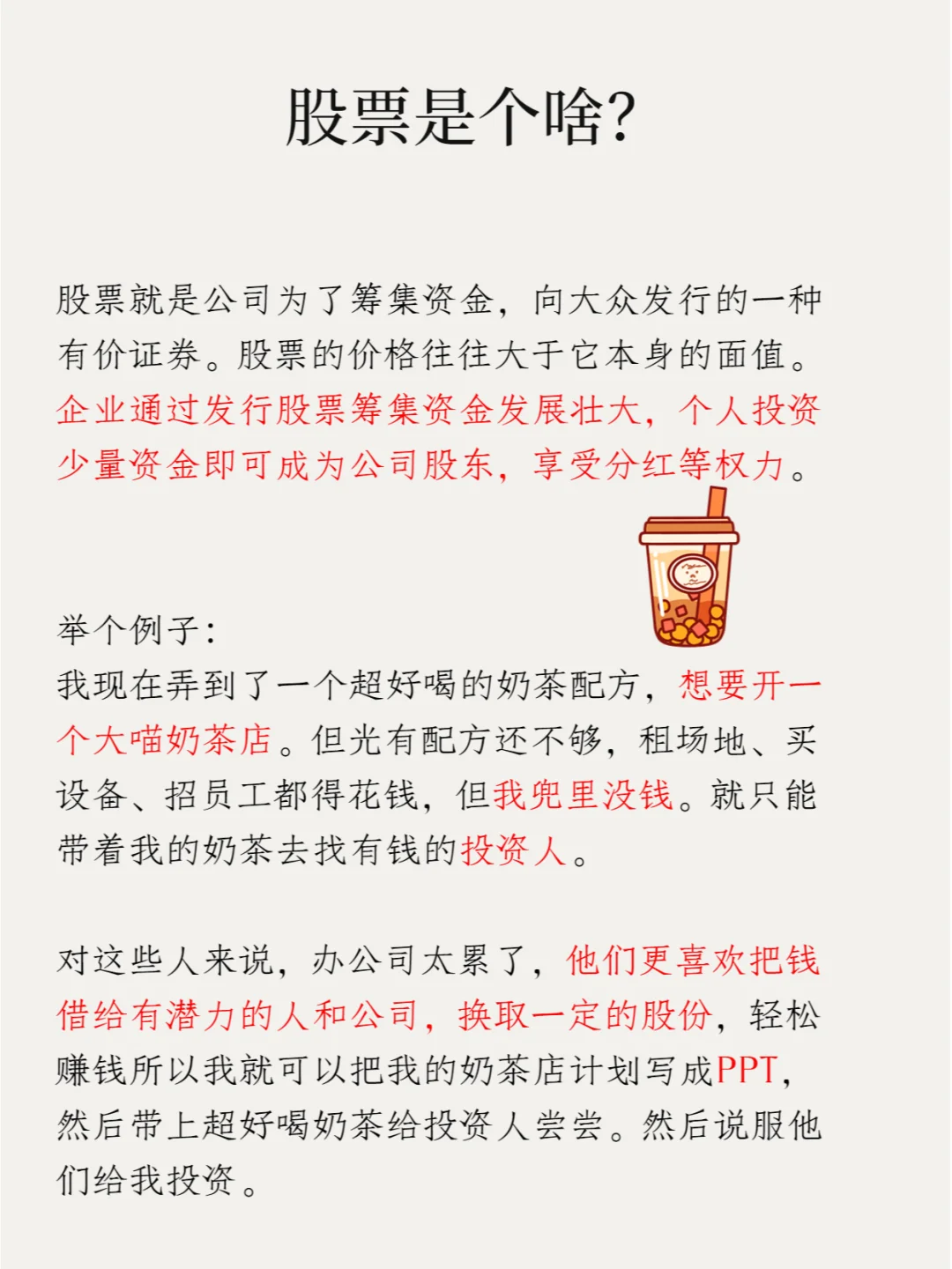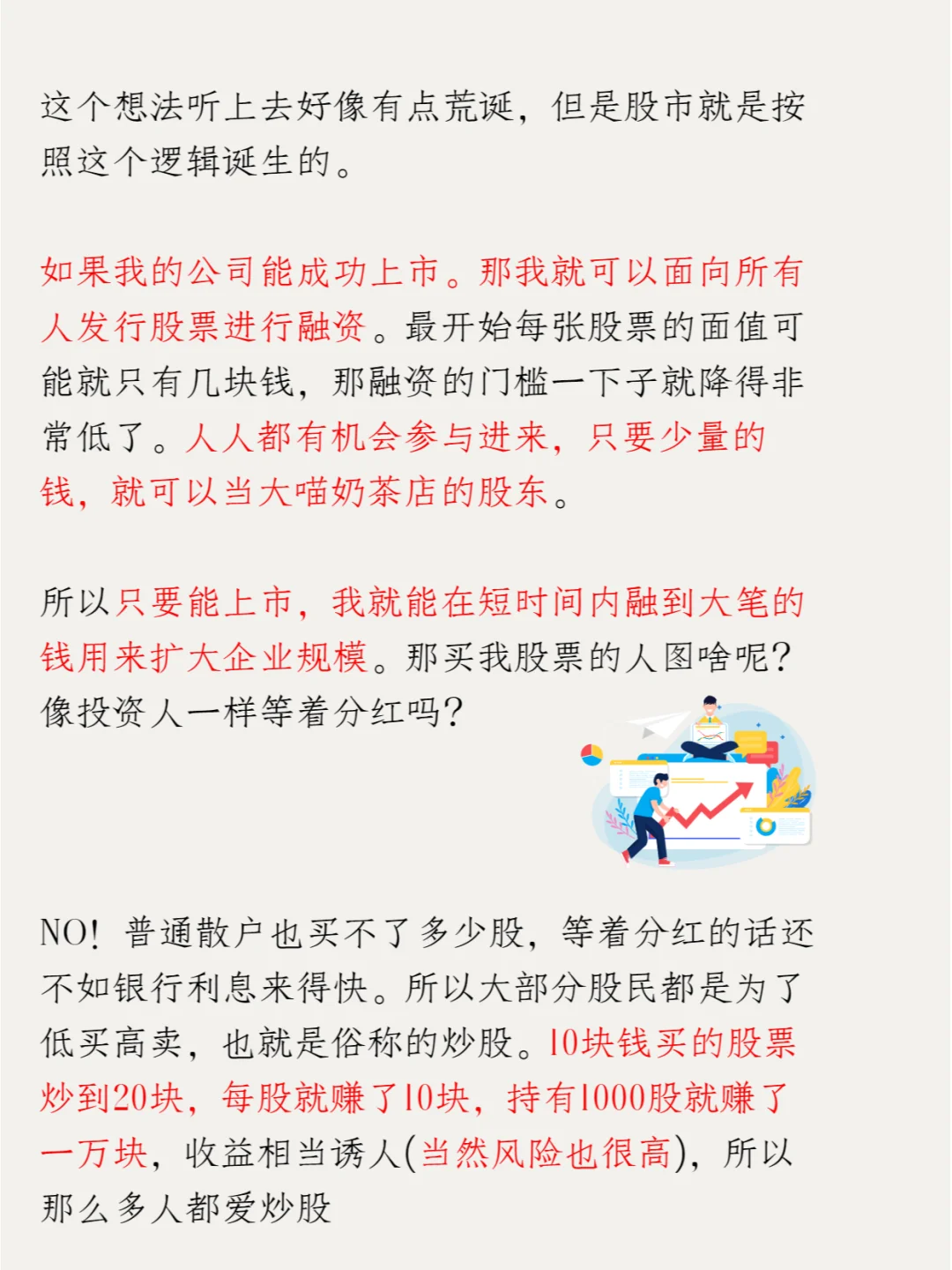 企业通过发行股票筹集资金发展壮大,个人投资少量资金即可成为公司股东,享受分红等权力[色色R]。