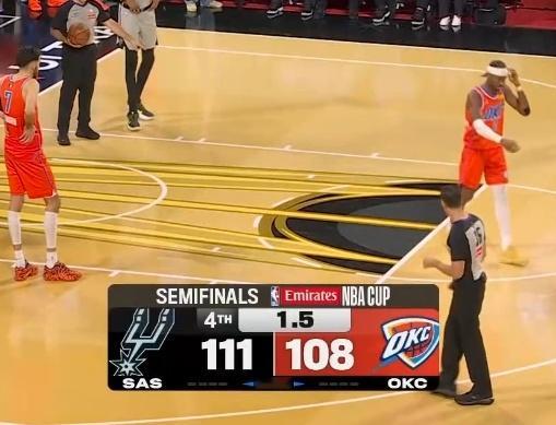 挺进NBA杯决赛!马刺111-109险胜雷霆,这四位球员是赢球最大功臣!1.