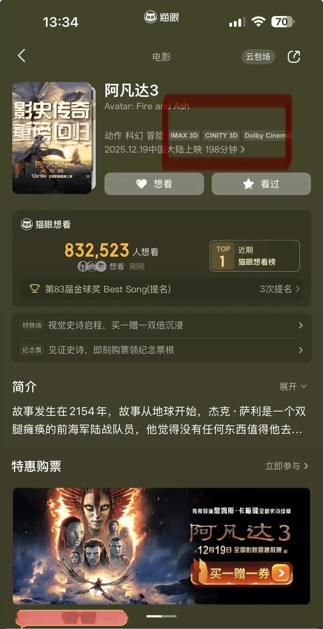 《阿凡达3》预售一开,猫眼直接挤爆!12月19号首映场,票像不要钱一样被秒光。 IMAX 130一张,钱包瞬间瘪,但想想潘多拉那画质,忍了。 可198分钟?3小时零18分,膀胱直接报警:兄弟,你撑得住吗? 我的策略:少喝水+最后一排,实在不行中场冲刺。 冲不冲?留言区battle,看谁才是真·铁粉!