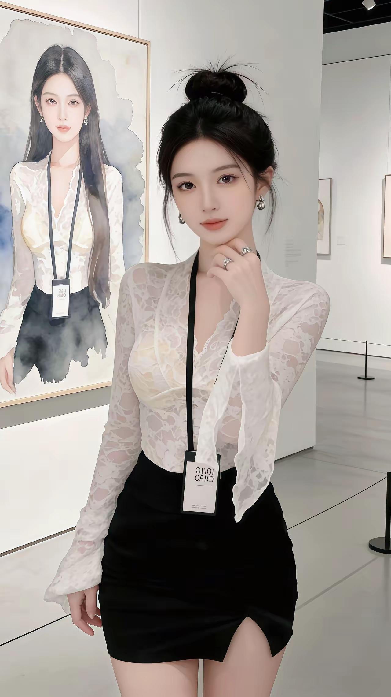 优雅艺术展穿搭,黑白蕾丝与现代艺术的完美融合!
