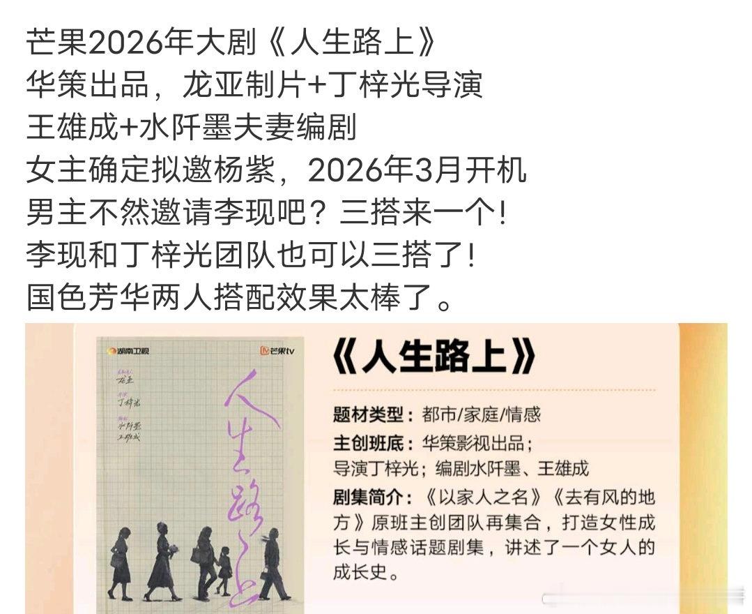 🍉 杨紫李现即将三搭,瓜主说杨紫新剧的男主不是欧豪,目前猜或者李现特出《玉兰花开君再来》,或者杨紫李现和国色芳华原班人马合作演《人生路上》。