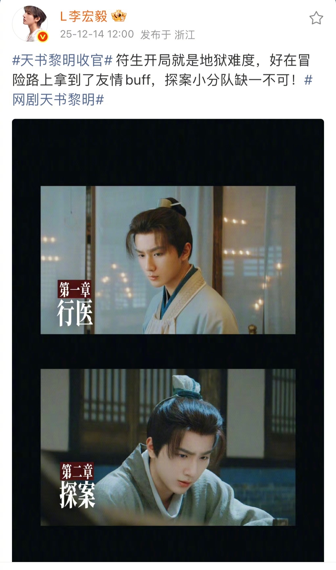 真有剧拿我当家人处啊 谁追《天书黎明》谁沦陷!中式悬疑 9分钟一个反转的高能剧情,看得人热血沸腾,实景古街鬼市氛围感直接拉满,服化道考究到让人惊叹,每帧都像在看电影!演员为角色专研医术、苦练杂耍超敬业,戏外还把粉丝的声音放在心上,收官福利诚意爆棚! 真心待观众的剧才值得被偏爱!