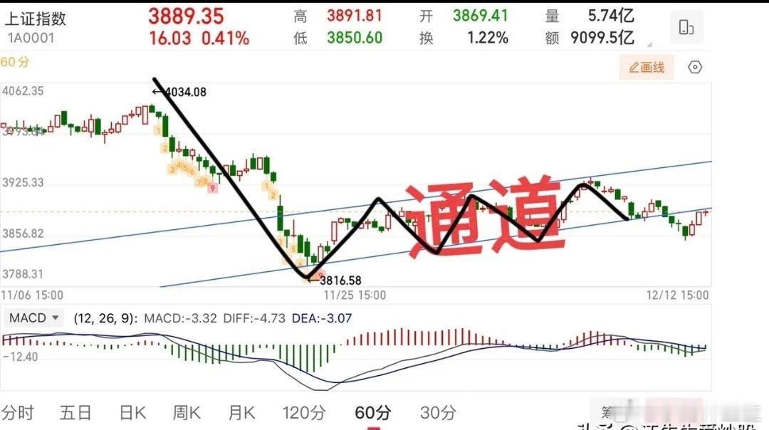 2025.12.14周日(下周策略) 本周下半周20日线拐头预期,机会来了? 大盘观点:上证指数本周仍以调整为主,好的一点是周五的反抽回到了3888,使得短期均线5/10日线不会向下发散,但目前还不能确认说调整就已经结束,只能说从指数的角度来看,还是在磨。从均线的预期看,从上上周其实就开始讲了,指数这个位置20方向会持续向下,有压制作用,要到本周下半周才有走平预期,所以多头一般会什么时候发力?只有压力减轻的时候(20日走平)才会对多头有利。 60分钟这里有一个反弹通道,如图所示,周五跌破反抽刚好顶在通道压力线,如果能够站回去还有机会再去触碰通道上轨,如果不能就还会弱势区继续折腾。 周线的角度,5/10/20周线,即将靠拢粘合,本周再叠加20日线预期,关注能否共振icon变盘。 总之,还需要等一个确切的信号,我个人还是认为下半周可以关注一下。 关注每个交易日开盘15分钟早评!