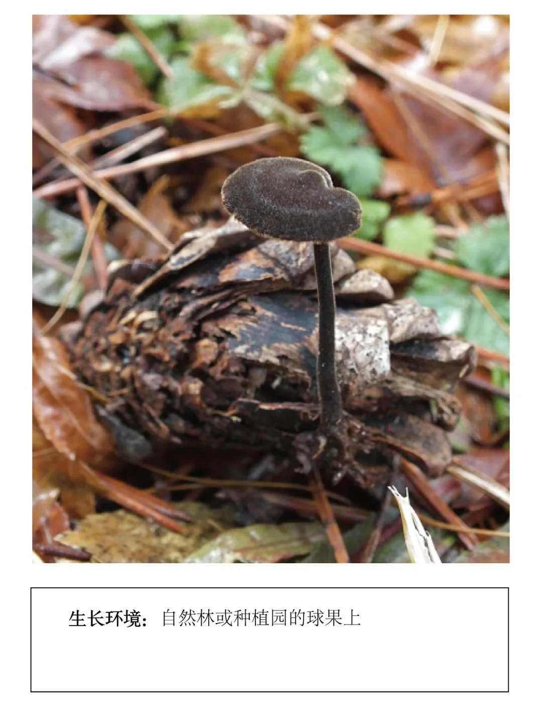 菌盖:菌盖呈勺形或耳匙状,半圆形,或肾形至心脏形,直径约0.5-3cm,颜色为灰烟褐色,老后表面绒毛可能会脱落。