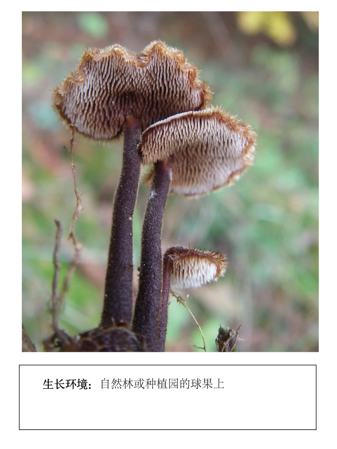 子实体:耳匙菌的子实体较小,革质且坚韧,表面被暗褐色绒毛覆盖。