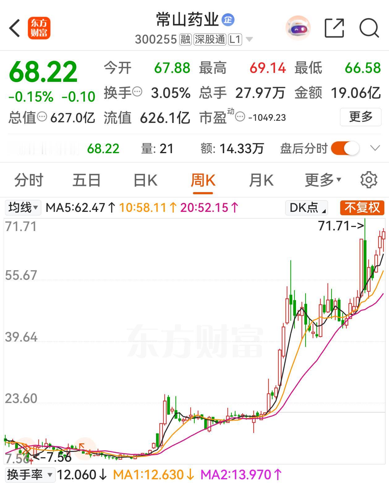 14倍的大牛股终于出头了,常山药业12月15日起纳入创业板指数和创业板50指数样本股,相关指数基金需要被动配置,炒作资金等到了功成身退的时候。 有人认为常山药业的业绩差,近三年收入一年不如一年,归母净利润持续亏损,2023年亏了12.4亿元,2024年亏损2.49亿元,今年前三季度亏损0.45亿元,前三季度亏损额同比扩大714.77%;常山药业的核心产品肝太素注射液竞争白热化,销量大幅下滑且毛利率下降,新产品艾本肽还没拿到批文就面临同类产品的竞争,能否破解战略断层仍存在大的不确定性;大股东持有的2.8亿股中有55%被质押,且多次大幅减持套现,其中2024年2月以9.2元/股的价格转让5.77%的股份,套现4.88亿元,2025年11月,以46.25元/股的价格(折价20%)转让5.01%的股份,套现21.275亿元。常山股份还在2023年因虚列销售费用373.29万被行政处罚5万元,因2018年夸大ED患者市场,2024年12月被证监会罚款60万元。但这不影响常山药业纳入创业板指数和创业板50指数,因为这两年其交易异常活跃,市值也670多亿了,满足了市值大、流动性好的样本股条件。 2024年以来,常山药业股价进入了上涨快车道,至今股价涨幅超过15倍,2024年是出名的妖股,2024年8—9月三次异常波动,2025年2月再次异动,现在股价68.22元,市值627亿元,市值进入创业板前列,6个月内日均成交量排名进入前50,也就顺利纳入相关指数了。这样就带来一个问题,基本面这么差的公司纳入指数,相关指数基金必须被动配置,也就是说高位接盘的还是基民。只要绩差股不停的炒,资金凭实力把股价炒上去,炒到纳入相关指数 ,就不愁没有机构来接盘。