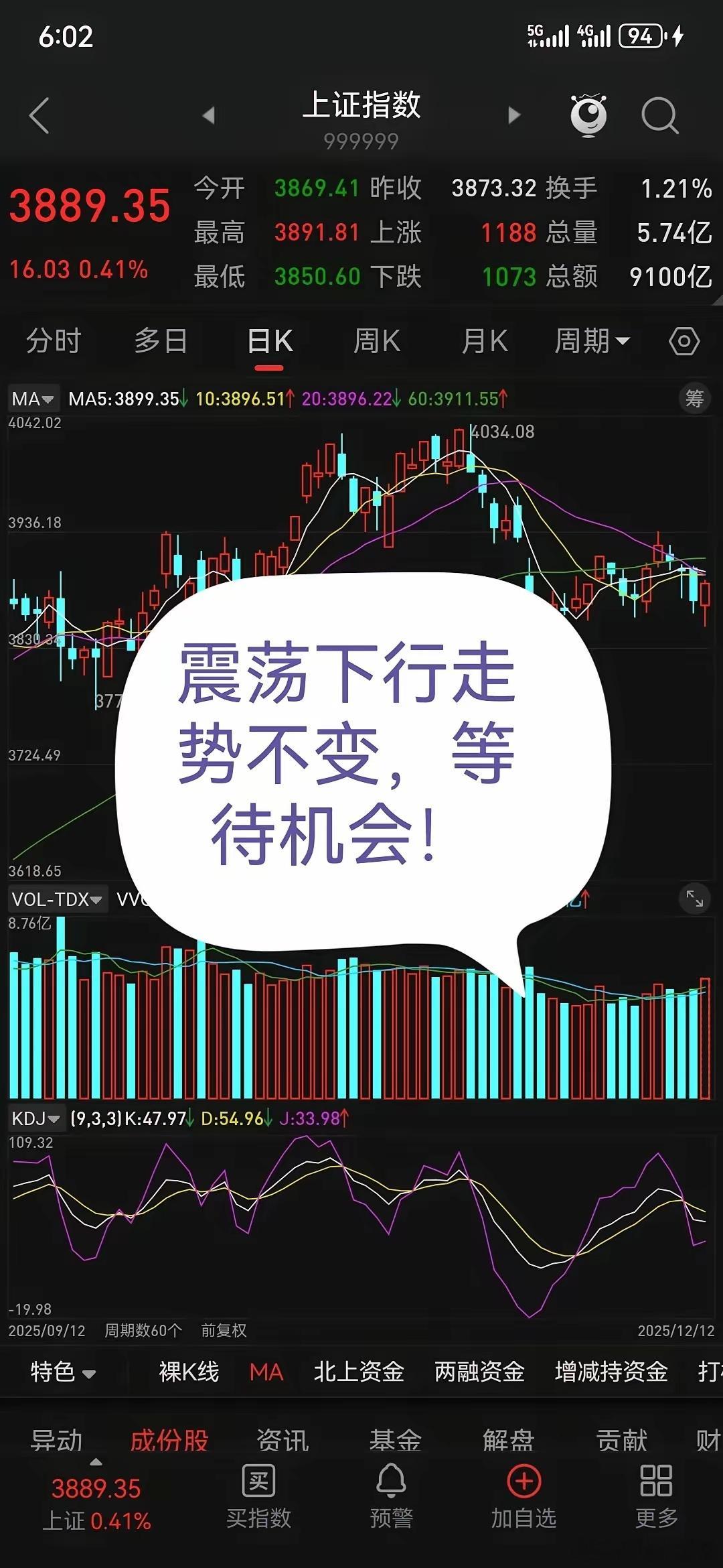 下周策略,先说结论:下周大盘还是走震荡下行走势。不会大幅度的回调跌破3816点,但跌破3816点是早晚的事,这点不变。上周一见到高点3936点以后,指数就一路走低,高点不过高,低点又创新低,很显然就是弱势反弹走势。操作也很简单,多看少动是主要动作。这里我要说的是,2025年很快就要结束了,现在是重点布局明年的哪些机会。我昨天写的头条《大跌大买,小跌小买》,要重点关注一下。这里面就是我个人对后期或明年的方向的观点。我看到是现在好的买入机会越来越近了,越是大跌,越是利空消息不断,指数的底部就会慢慢浮现出来了。这个道理以前的头条我也说过,买在无人问津处,卖在人声鼎沸时!半导体板块是个大族群(ai的大脑),大盘大跌之时,要重点关注,个股方向昨天也说了。谁在指数大跌之时,比板块和大盘抗跌,就是下一波的主流,这点十分重要。明年能不能赚波大的,就看个人的能力了。后期我也会重点提示,跟踪个股,和友友们共同研究进步。