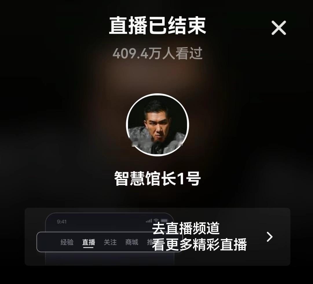 台湾馆长首播,30分钟突破409万观看人数,最高16.5万人同时在线,很厉害了,不过因为提了别的平台,被迫下播