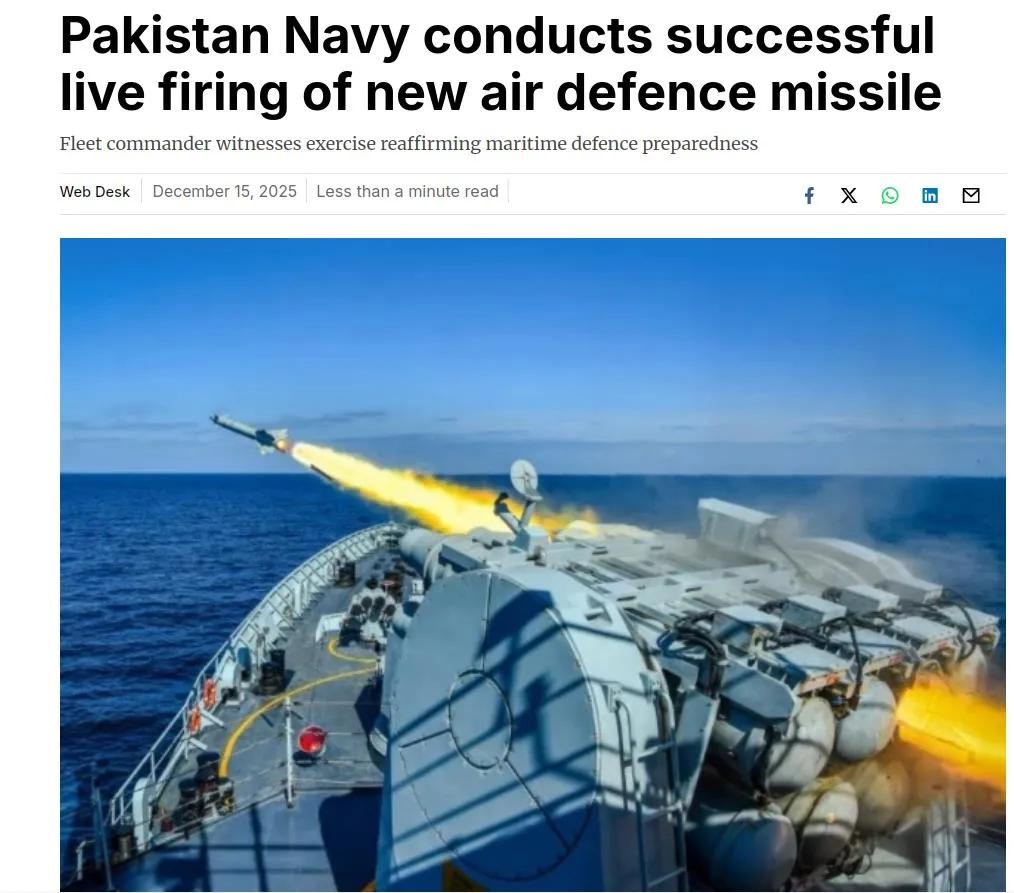 巴基斯坦海军在北阿拉伯海成功进行了FM-90NER舰空导弹的实弹射击。发射FM-