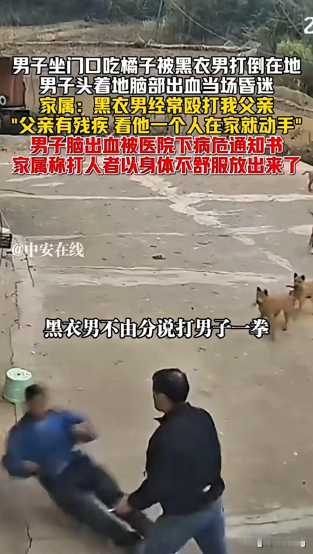 江西残疾男子被连番欺负,这次被打得颅内出血生死未卜,施暴者竟因“身体不适”取保回家——最让人心寒的不是拳头,是白发老母那句“赶紧跑”! 别拿“一时冲动”当借口,黑衣男早就是惯犯,这次趁人 alone 下手,把人后脑勺砸在水泥地上,橘子都染成了血色。他后来想打120,老母亲却一把打掉手机催他逃,这哪是护子,是把儿子往更深的坑里推。 法律里故意伤害残疾人要从重判,窝藏教唆也得担责,就算取保也逃不掉审判。 大家气的不是法律有漏洞,是“欺负弱者”的恶,和“犯错就逃”的糊涂,这比拳头更伤人心。 你觉得这老母亲的“护短”,算不算帮儿子错上加错?来评论区聊聊~ 反对暴力 保护残疾人 法律公平