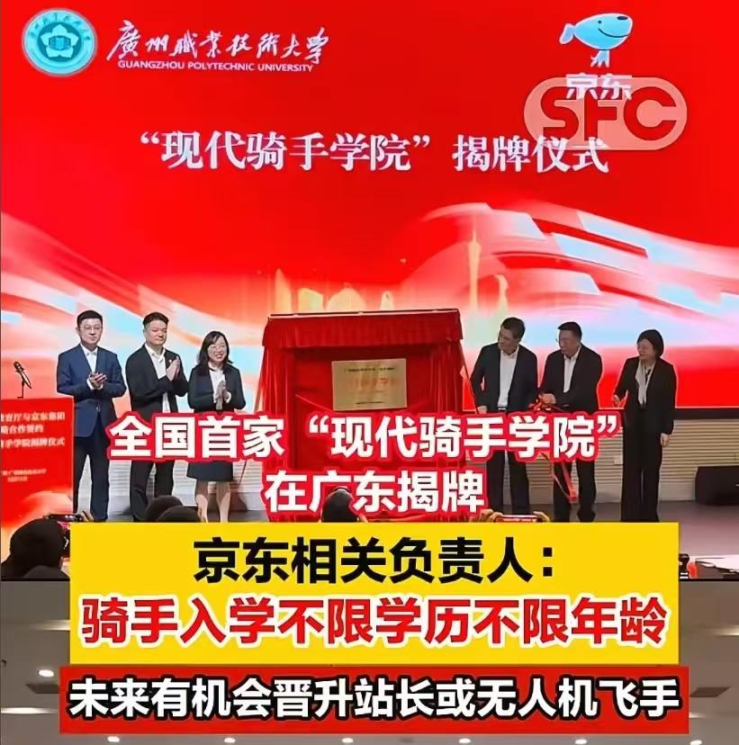 听说了吗,全国首个现代骑手学院落户广州,没错,就是培训学生如何送外卖,这是京东和广东教育厅的战略合作!不知道以后这个专业会不会普及,如果普及了,那以后送外卖可能都要招对口专业了,不是这个专业毕业的,可能想送外卖都没人要你!京东骑手 送外卖大学