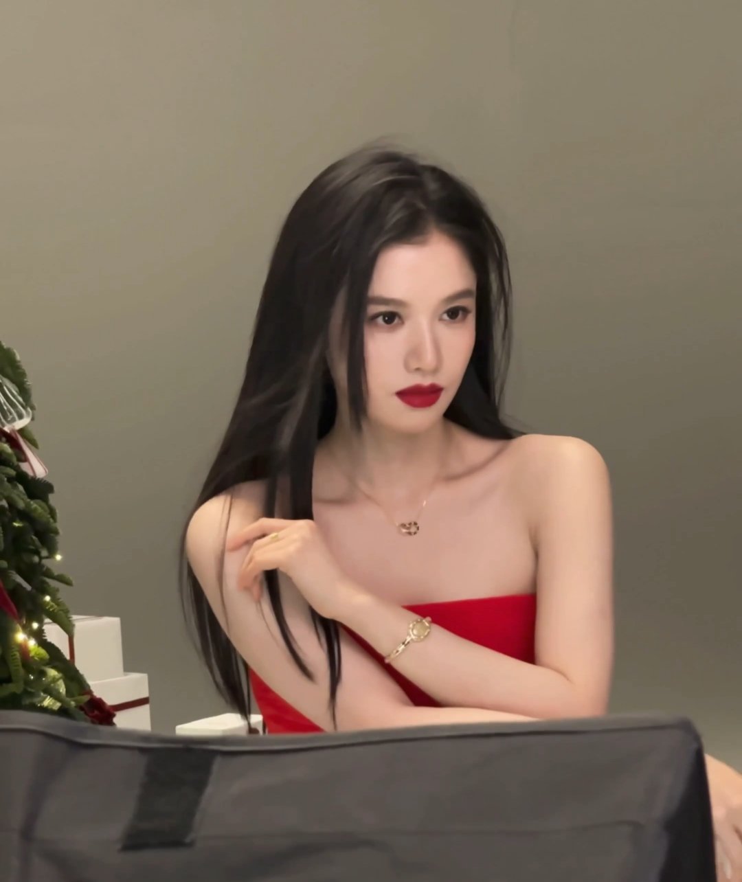 这个张婧仪完全明媚美抹胸红裙完全戳中我的心吧
