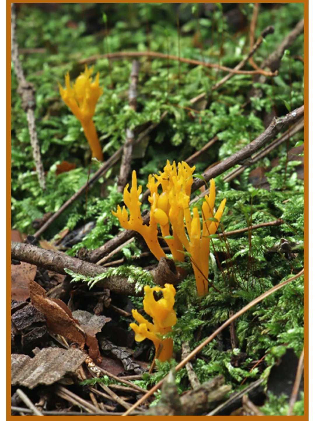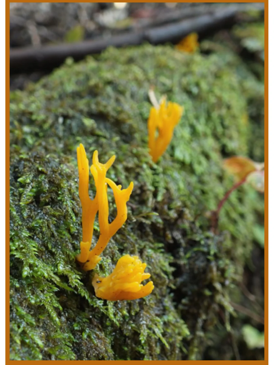 黏胶角耳 Calocera viscosa 不可食 该菌常生长在针叶树上,通体亮橙黄色,有时候被当作餐桌上的彩色装饰品
