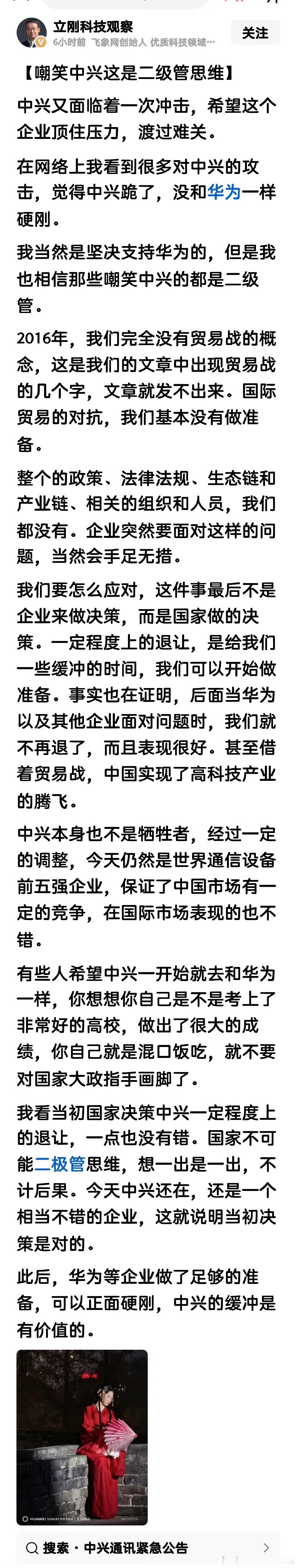 项立刚称当下嘲讽中兴者皆为“二极管”思维。 桂哥评:嘲笑中兴的都是些什么妖魔鬼怪