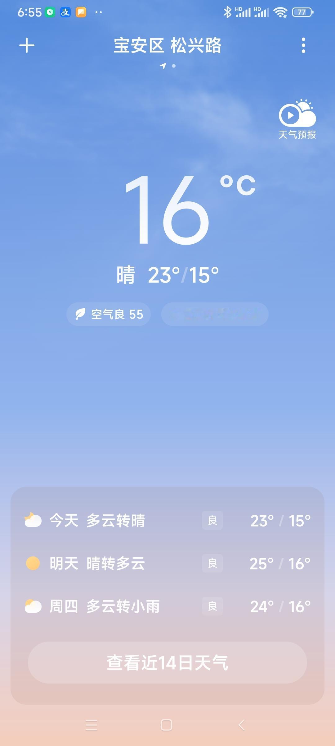 你的城市今天天气怎么样深圳天气,深圳今日多云转晴,气温15度到23度,湿度72度