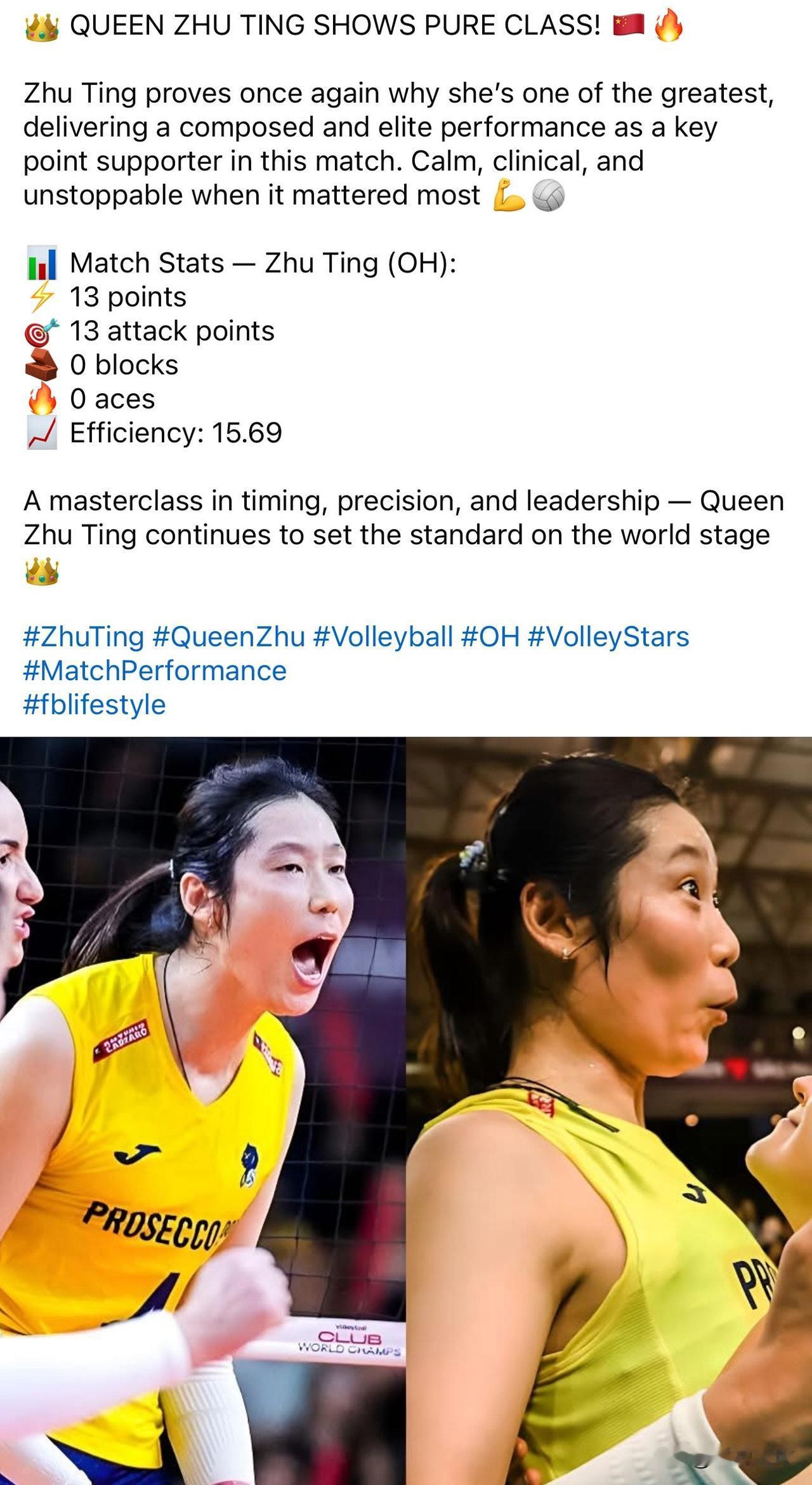 科内输了:但朱婷却赢得了“一致称赞”! 2025 巴西女排世俱杯決赛,意大利科內利亚诺1:3意大利斯坎迪奇(28-30 | 19-25 | 25-21 | 23-25),科内遗憾屈居亚军。 但是朱婷的表现却征服了球迷和业内人士: 来看几条评论: 1、 在这场比赛中,朱婷作为关键得分手,表现十分沉稳,技惊四座,关键时刻,她的扣球冷静、精准、势不可挡 。 2、朱婷这扣球,这个角度展现了绝对世界级水平,多么精彩的一击! 另外一个数据统计,朱婷的得分效率位居全队第一: 得分效率=(进攻净得分+拦网净得分+发球净得分)/(进攻总次数+拦网总次数+发球总次数),净得分是相应技术环节的得分减掉失分。 朱婷 得分效率21.43 哈克 11.11 加比 13.85 阿迪格维 20 西拉 9.09