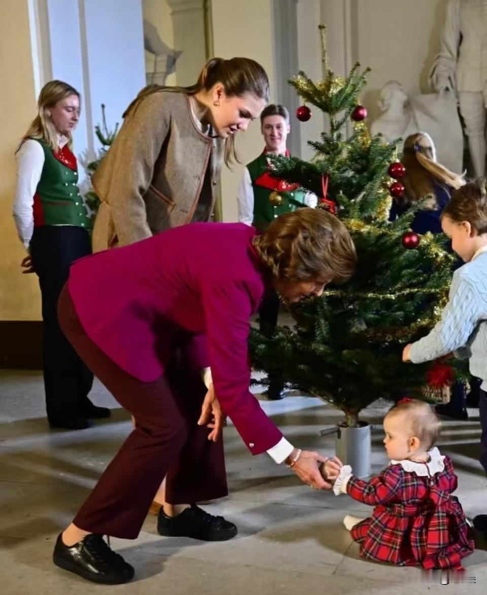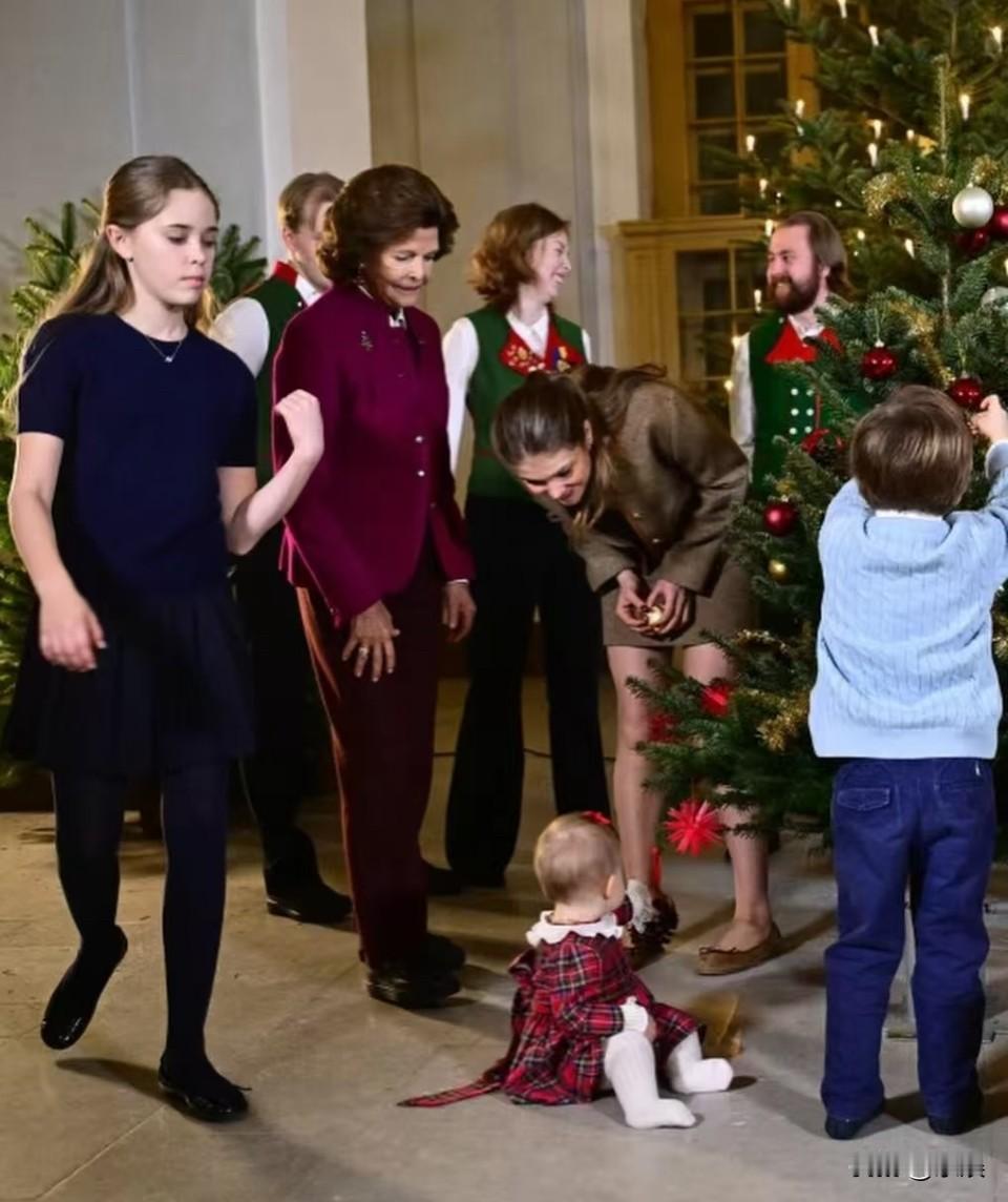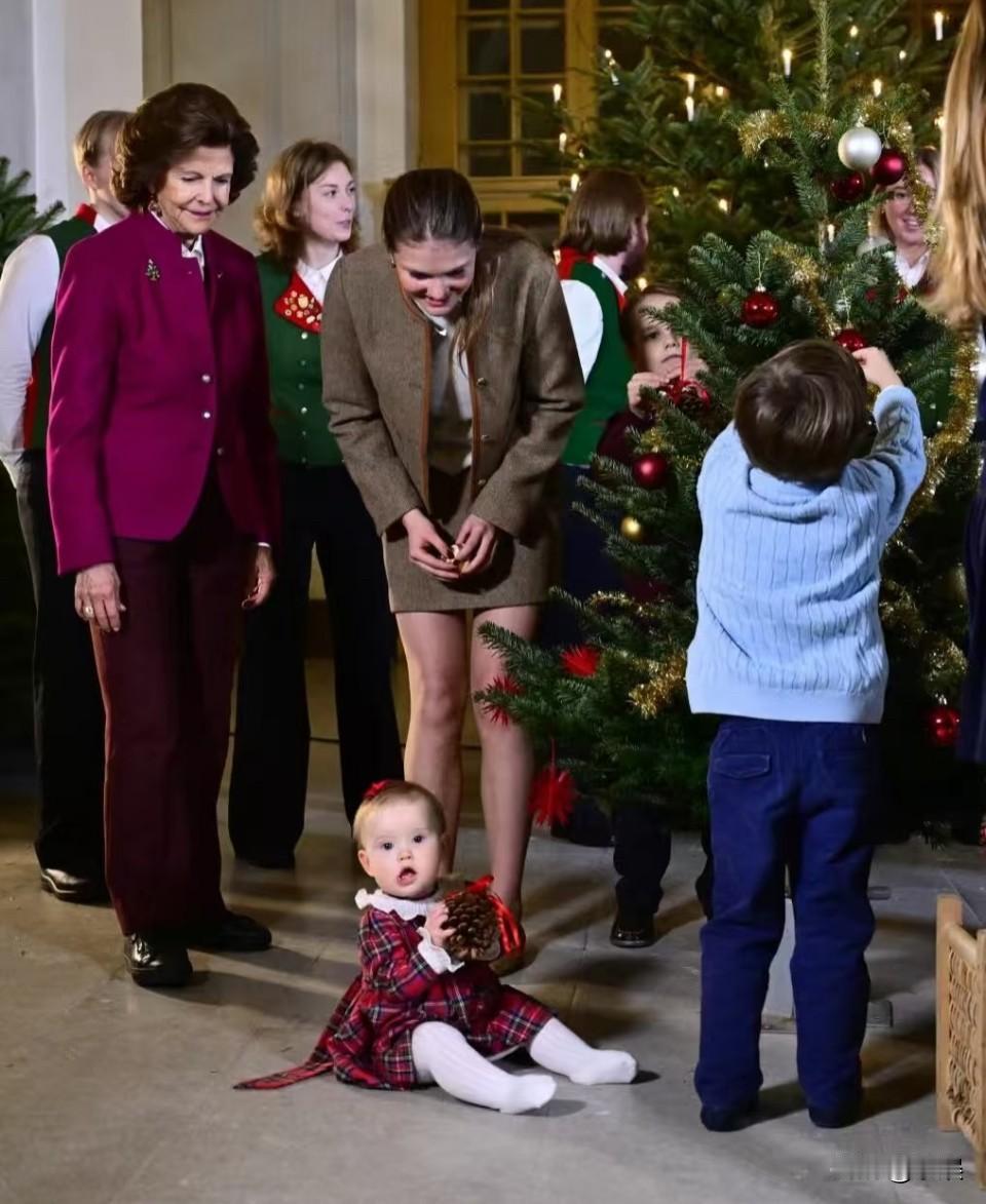 瑞典新生小公主成团宠 圣诞节将至,瑞典王后西尔维亚和以前一样,带着自己的孙辈们出来装饰圣诞树。今年还多了个小家伙,蛇女生的四胎伊内丝公主。 伊内丝公主不满一岁,深受表姐埃斯特拉公主的喜爱。这么大的宝宝,真就是个可爱的玩具。瑞典王室