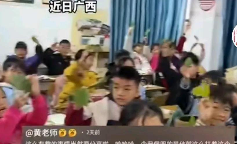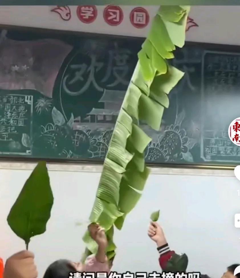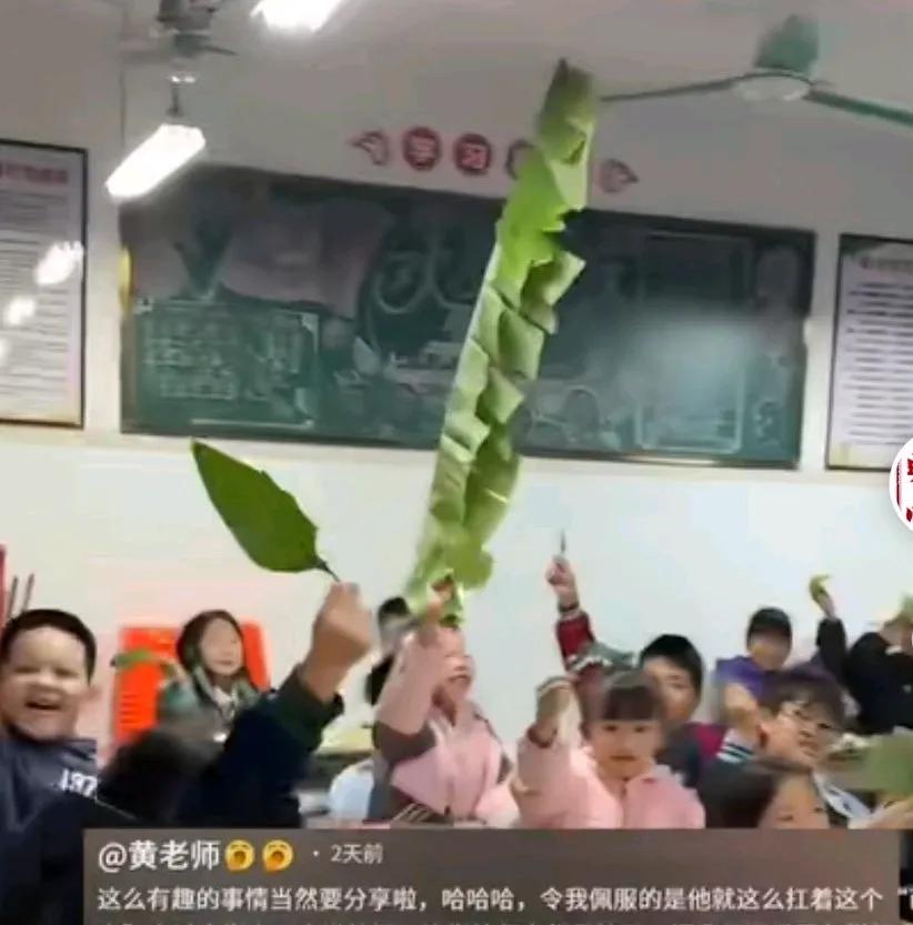 老师让学生们准备一片树叶,结果爷爷帮孙子砍下一片芭蕉叶,老师看到有的同学是银杏叶有各种叶子, 最叫人震撼的是一个孩子举着芭蕉叶, 老师说他就这么扛着这个芭蕉扇走过大街, 走进校门, 叫保安都惊到了, 以为老师要包糍粑。 这是孩子的骄傲, 觉得自己的最独特。 网友说,果然后排出人才! 有人辩驳,最后一排怎么了,不是学习不好, 而是个子太高!