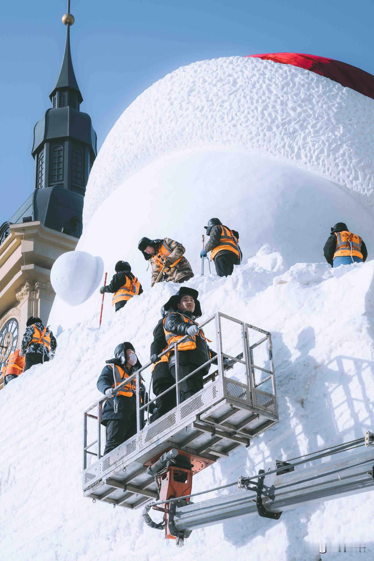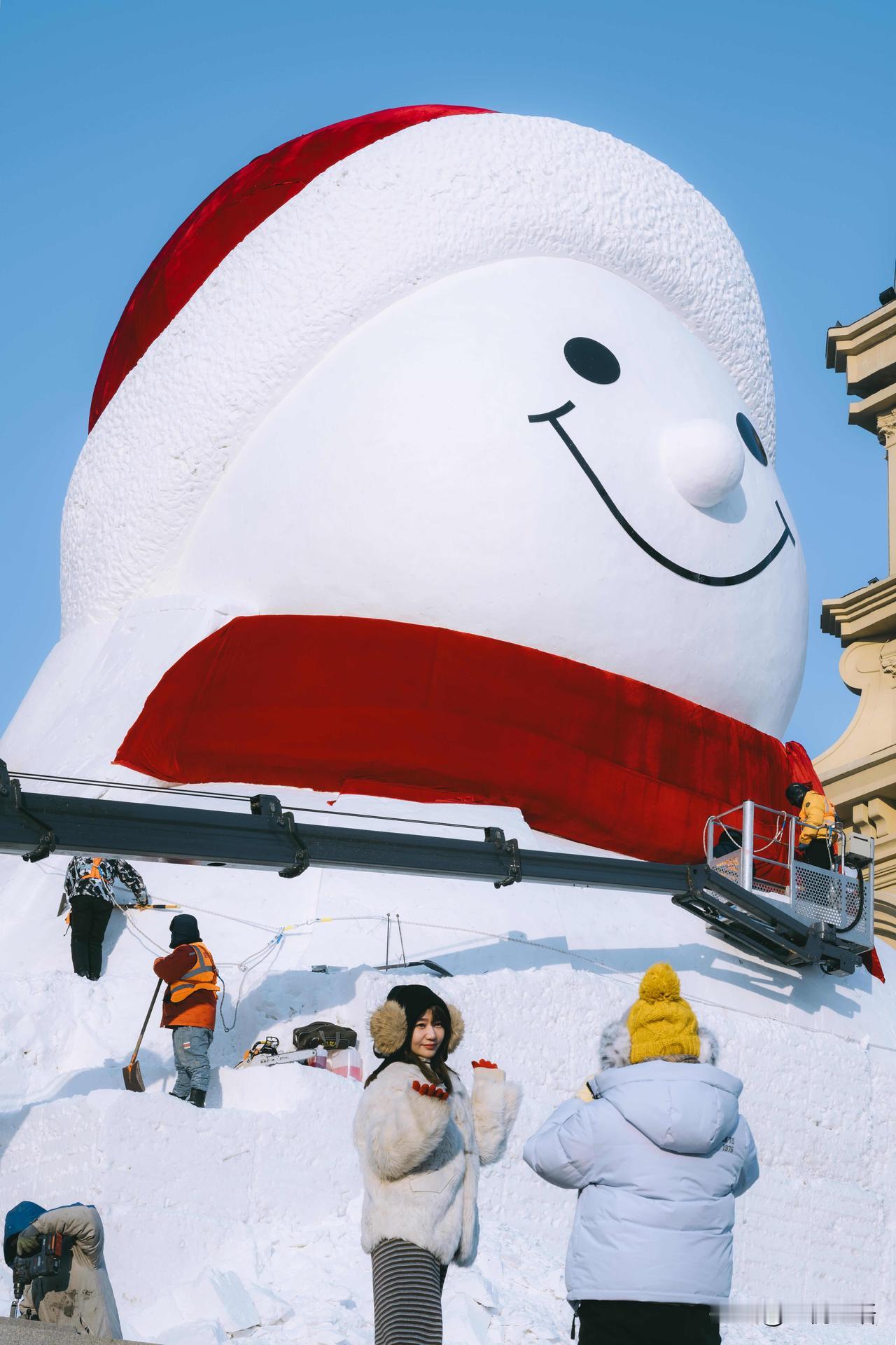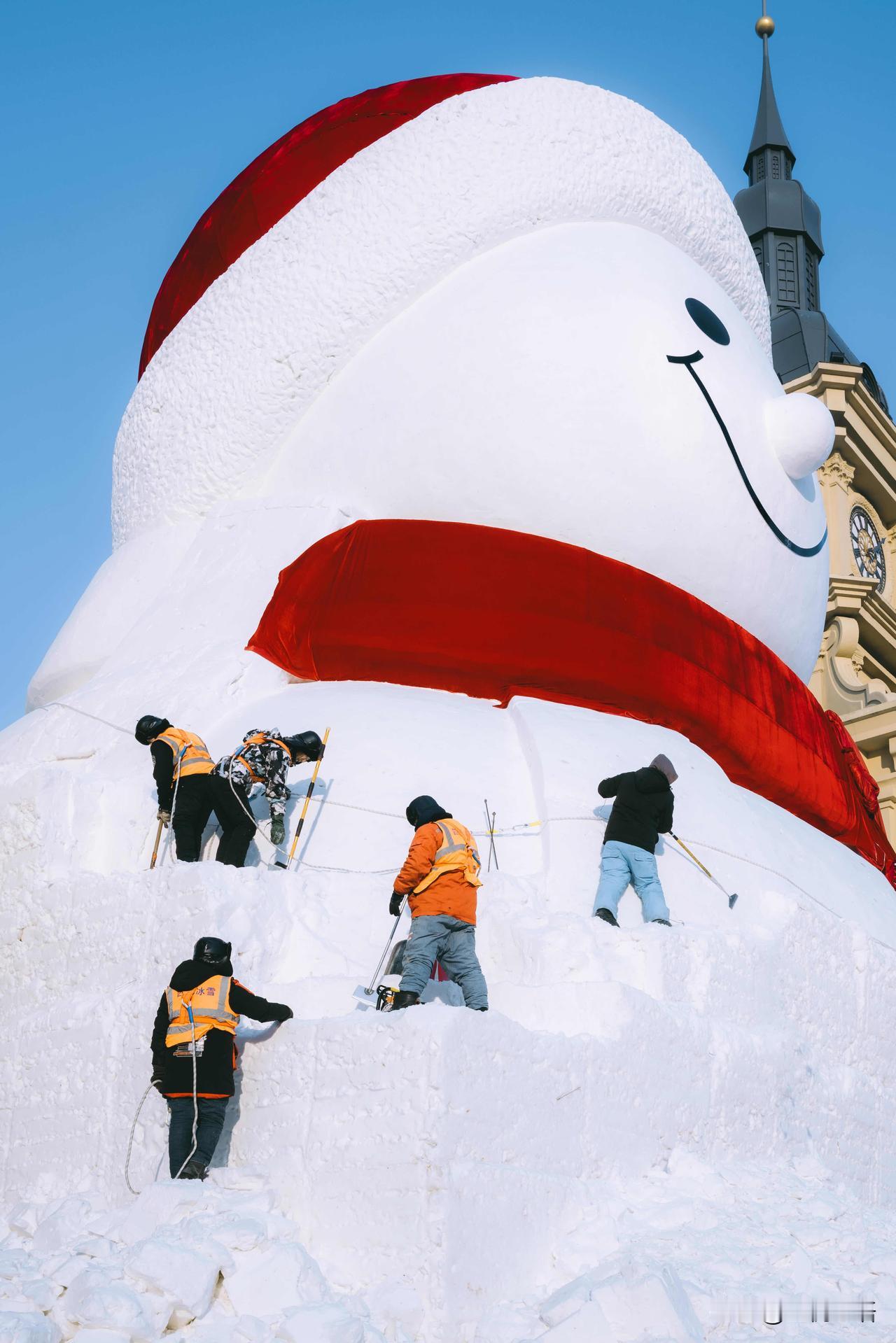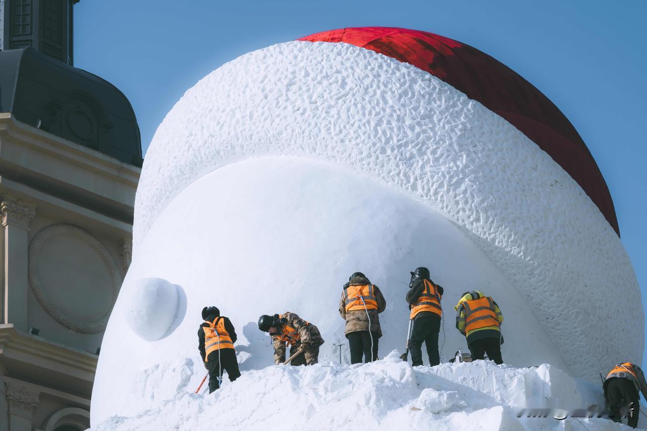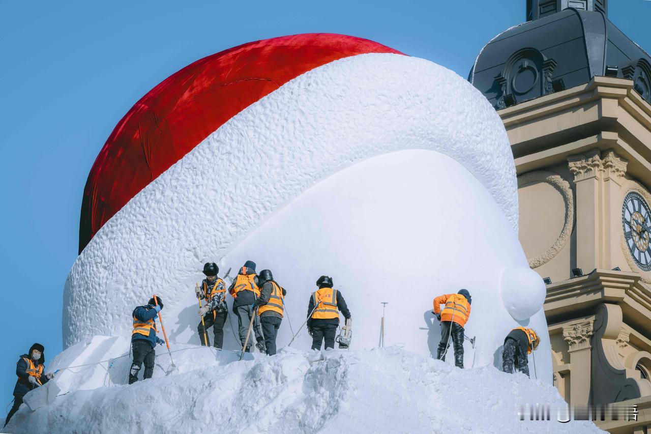 记录一下哈尔滨大雪人诞生记, 每一步都藏着匠心! 谁能想到, 哈尔滨音乐长廊的网红大雪人, 是这样慢慢“长大”的呢! 连续几天蹲守江边, 见证了冰雪匠人的辛苦付出。 从堆雪塑形到细节雕琢, 寒风中一点点打磨, 每一笔都藏着用心, 才让大雪人变得呆萌又可爱。 这不仅是冬日美景, 更是匠人的坚守与热爱。 来哈尔滨旅行,别只打卡成品, 不妨去江边看看大雪人的诞生过程, 这份冰天雪地里的匠心,比美景更让人动容~ 哈尔滨大雪人 雪人景观