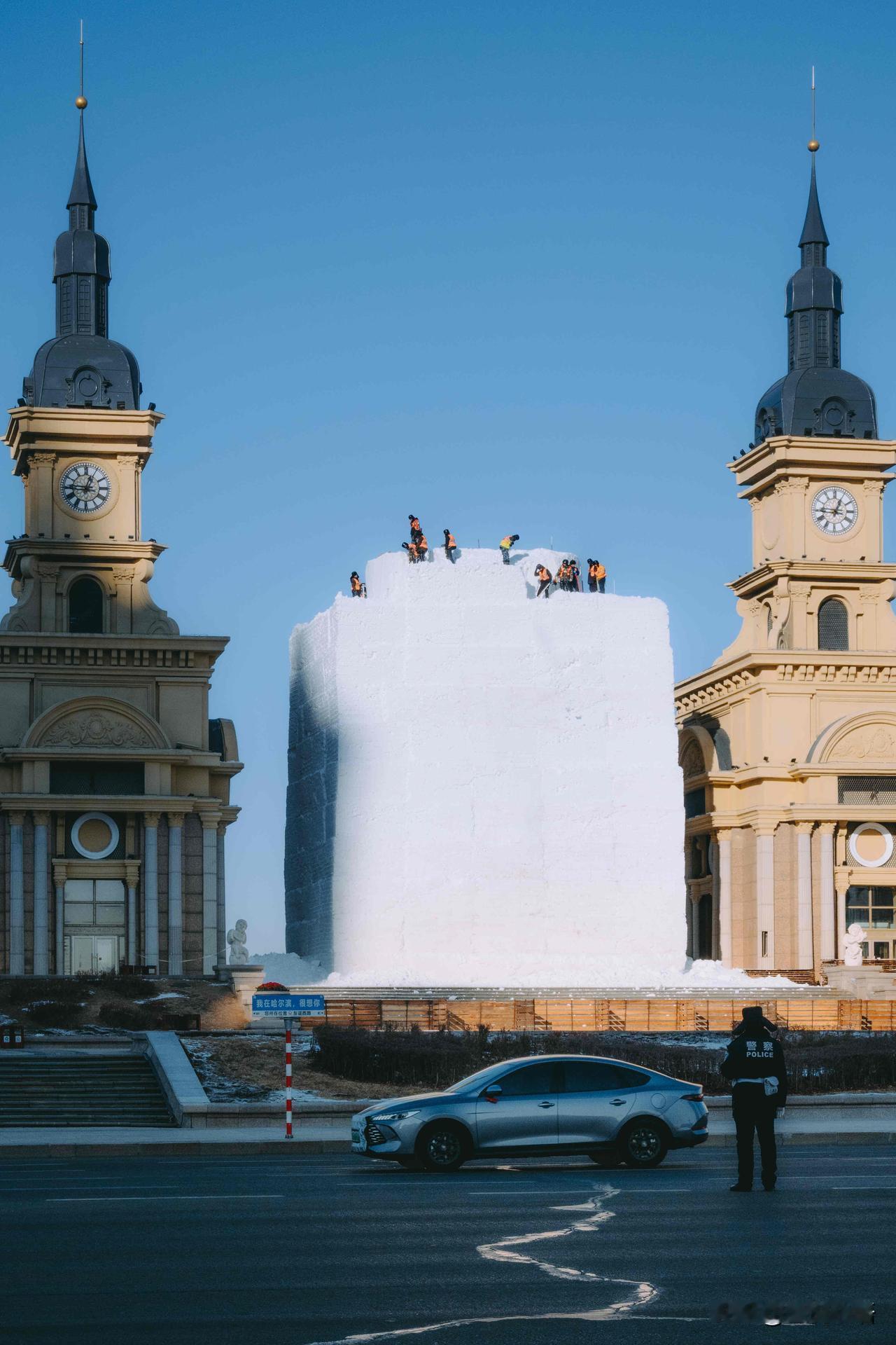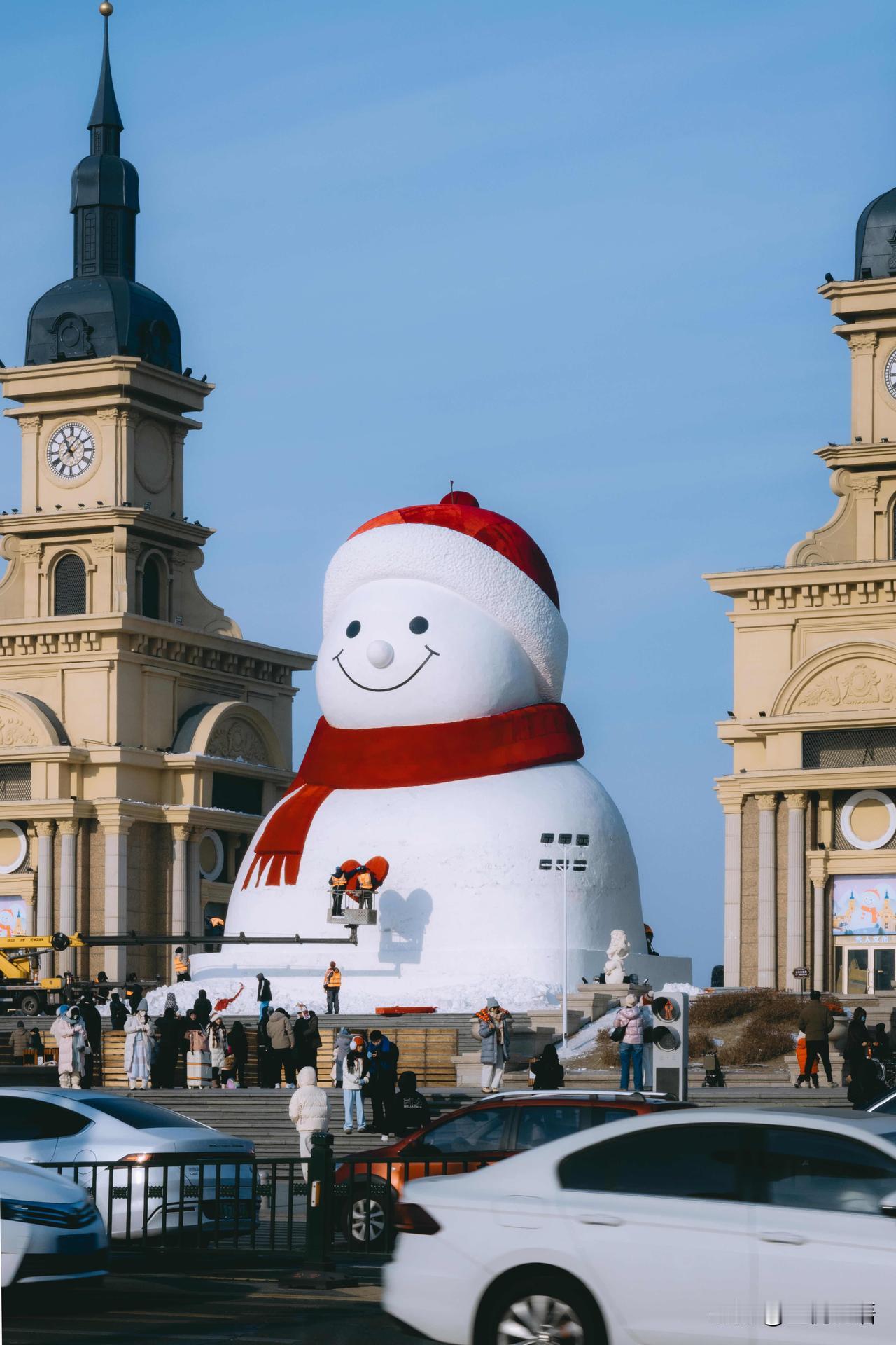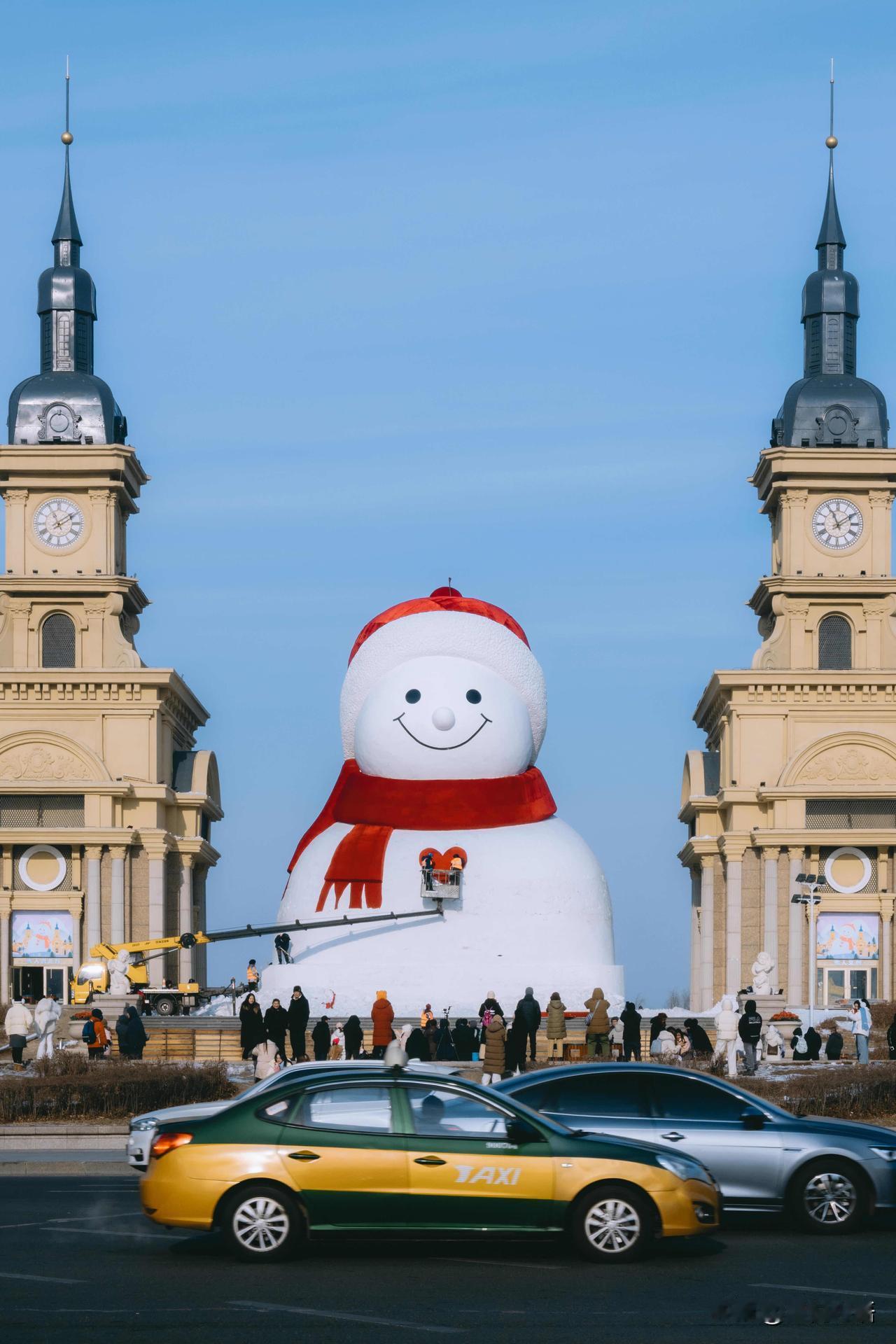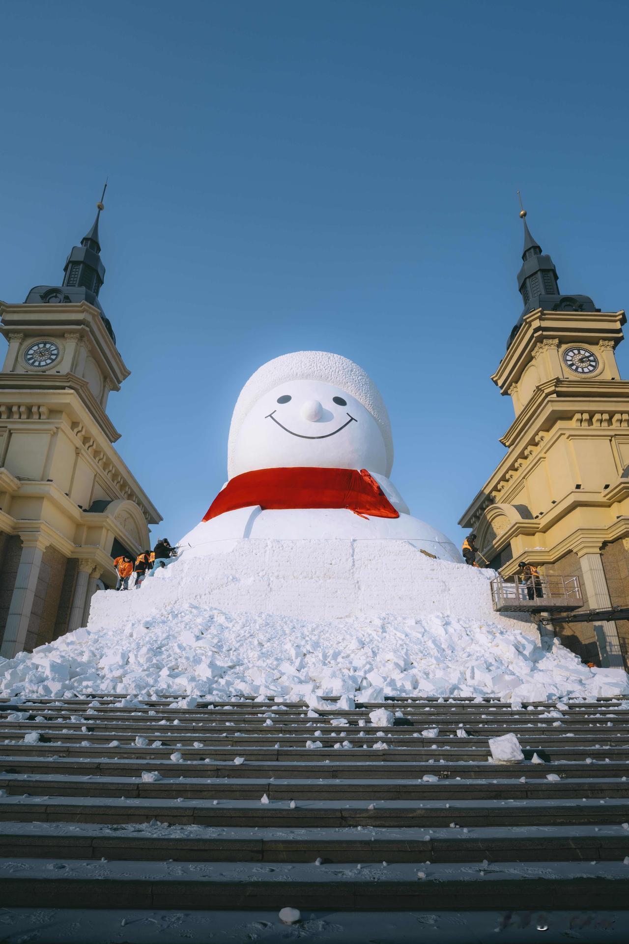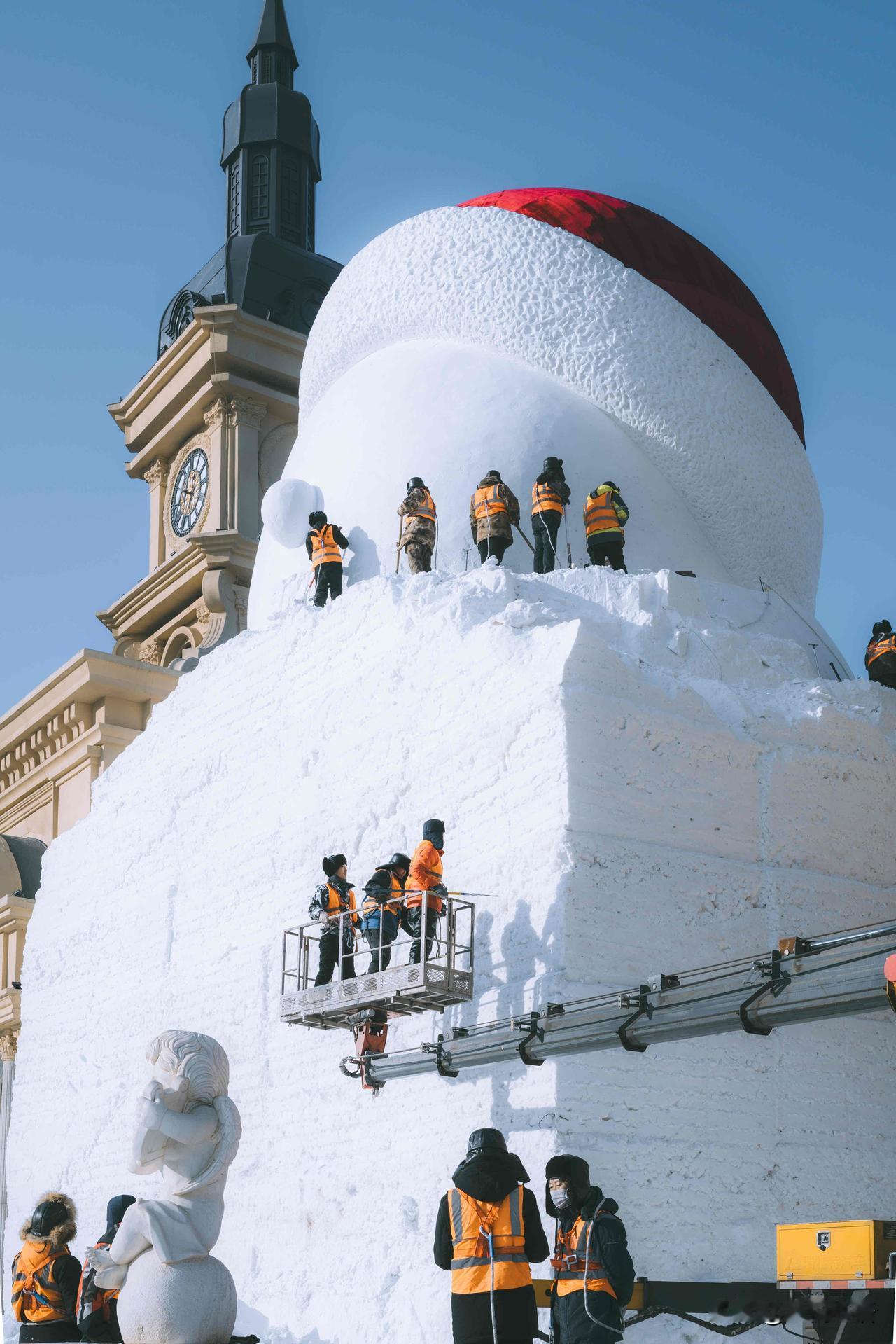 记录一下哈尔滨大雪人诞生记, 每一步都藏着匠心! 谁能想到, 哈尔滨音乐长廊的网红大雪人, 是这样慢慢“长大”的呢! 连续几天蹲守江边, 见证了冰雪匠人的辛苦付出。 从堆雪塑形到细节雕琢, 寒风中一点点打磨, 每一笔都藏着用心, 才让大雪人变得呆萌又可爱。 这不仅是冬日美景, 更是匠人的坚守与热爱。 来哈尔滨旅行,别只打卡成品, 不妨去江边看看大雪人的诞生过程, 这份冰天雪地里的匠心,比美景更让人动容~ 哈尔滨大雪人 雪人景观