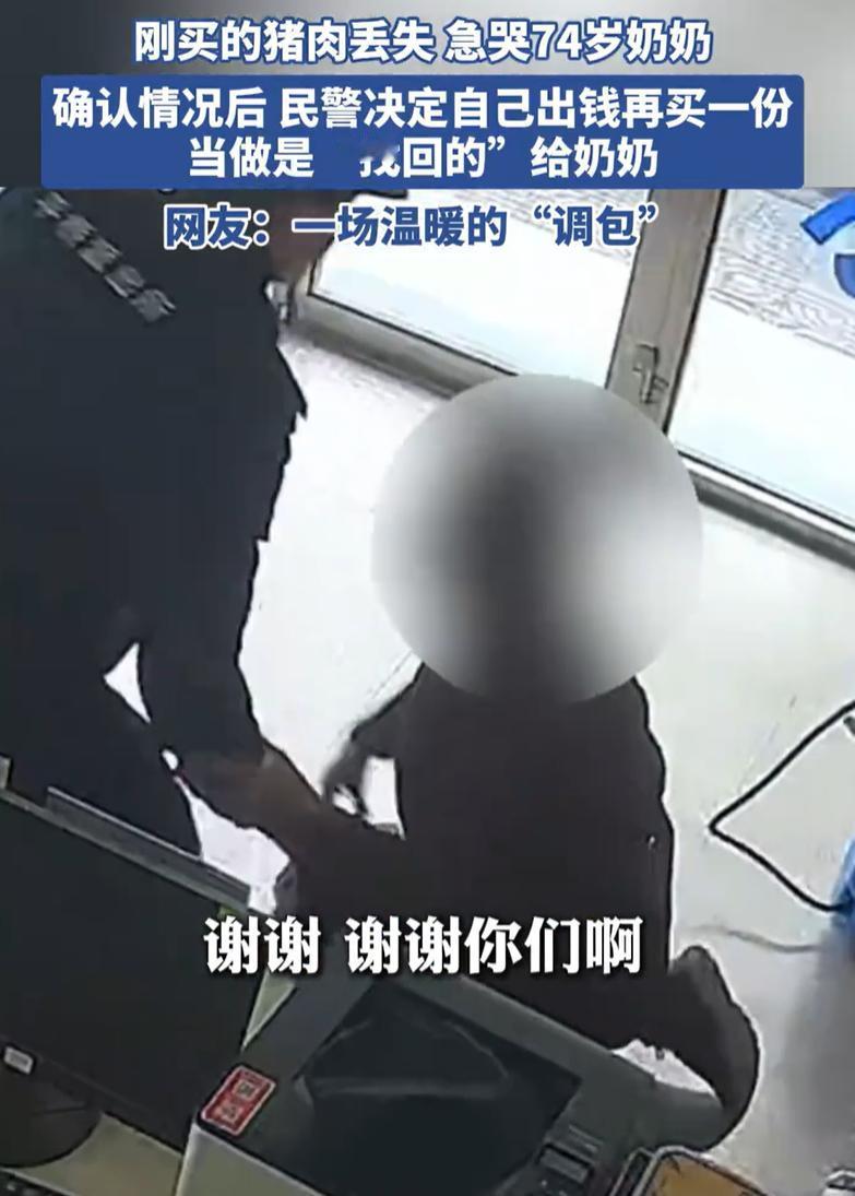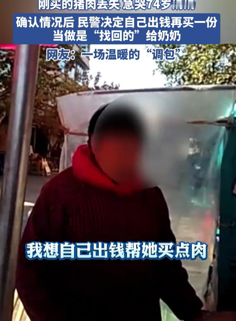 这位民警火了!浙江,一位74岁的奶奶去菜市场卖肉,本来是打算送人的,没想到刚买的猪肉,去个超市的功夫就不见了,奶奶哭着进派出所求助,一番寻找下来,肉并没有找到,但一位民警却自掏腰包买了一块猪肉,跟奶奶撒了一个善意的谎言 当天,这位奶奶哭着走进派出所求助,奶奶的话不长,反反复复就一句,钱不好挣,手都磨破了。那不是诉苦,更像是在解释自己为什么这么在意这块肉。对很多年轻人来说,66块钱可能就是一顿外卖。对她来说,却很重要 值班民警听完,没有敷衍,也没急着下结论。他陪着老人回到现场转了一圈。没找到肉,也没监控。结果其实已经很清楚了 事情到这里,按流程已经结束。找不到就是找不到。可民警没停在流程里。他又回到奶奶买肉的摊位 为了让老人相信这就是她丢失的那块肉,他还特意请摊主用红色塑料袋装好,尽量还原原来的样子。回到派出所,民警走到李奶奶面前,微笑着说:“奶奶,您的肉找回来了!掉在路边我给你找回来了” 老人接过肉,情绪一下子绷不住了,当场跪了下来。民警被吓了一跳,赶紧把人扶起来 有网友说的很好:从丢失猪肉看老奶奶的情景估计她的生活很拮拘,民警给她送的猪肉就像是快熄灭火上加一把柴,看到很暖心 这件事真正打动人的地方,不在于掏钱,也不在于故事编得多圆。关键在于他看懂了一件小事的分量。对不同的人,同一件事重量不一样。理解这一点,本身就是一种能力 有人担心会不会带来不好的示范。其实不用过度解读。这不是制度替代,也不是鼓励人人效仿。这是个人选择,是在不违背原则的前提下,给了一个更温和的解法。善意不是流程里的必选项,却能成为人与人之间的缓冲垫