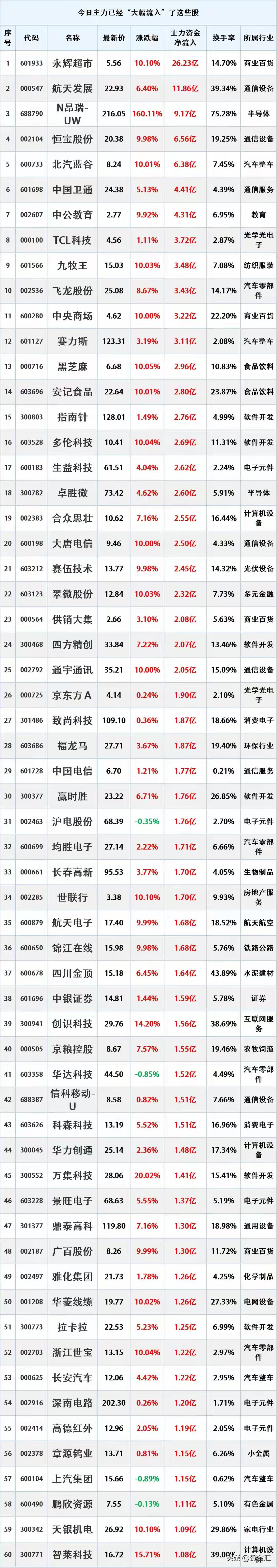 尾盘资金入场抄底,12月16日主力资金大幅流入的股票名单。 资金流入是指在一定时期内(如一天、一周等),主动买入某只股票的资金量大于主动卖出该股票的资金量。主动买入是指投资者以卖方的报价直接成交,显示出投资者对该股票的积极购买意愿。