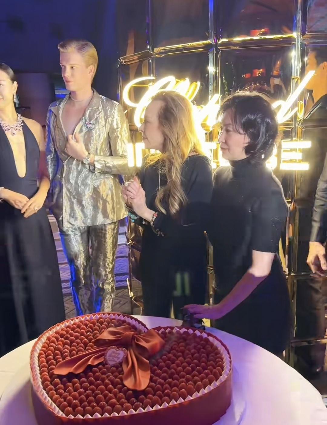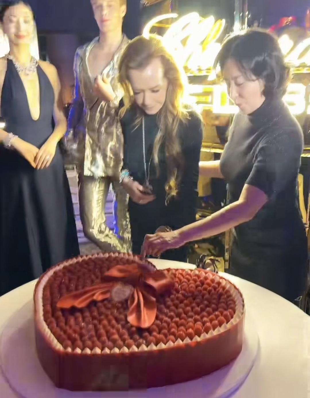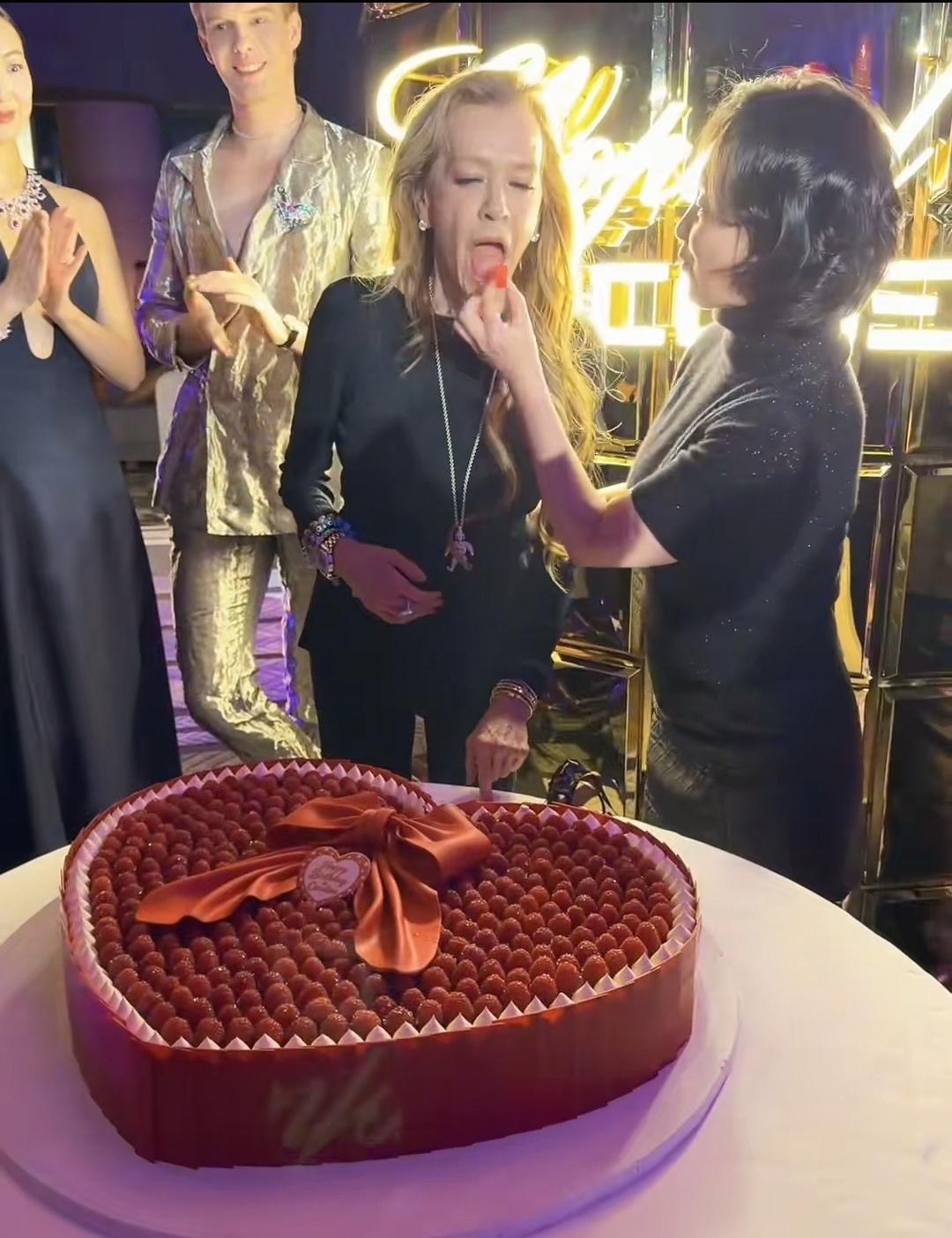 何超琼女士从澳门赶到哈尔滨参加活动了,打扮的很时尚,穿着黑色高跟鞋,黑色皮裙和黑色毛衣。 正好赶上了她过生日,一群国内外友人在哈尔滨陪她一起过生日,生日现场有一块大的心形蛋糕,蛋糕上摆满了红色草莓。 何超琼品尝了一个感觉味道很不错,邀请友人一起吃,并摆出手势与大家一起开心合影。