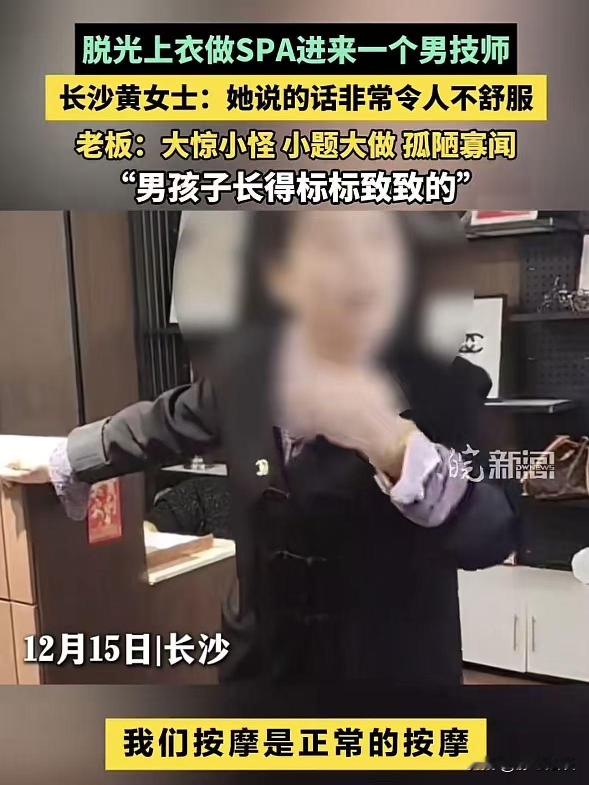 湖南长沙,女子到按摩店按摩,脱光衣服趴在床上准备按摩的时候,却发现有个男人说话的声音,她吓了一跳随手拿起身边的东西遮挡自己,原来女子选择的项目由该男技师服务,女子当场拒绝,要求自己只用女技师,结果旁边的店员眼睛一横,怼道:装什么装,长得一般事还不少,真是小题大做,在说我们是正规按摩店,一直都是这么安排的,从来没人觉得有问题,女子闻言被气的一肚子火。 黄女士最近遇上了一桩糟心事,本来想着按摩放松一下,结果非但没解乏,还憋了一肚子气。 2025年12月12日,忙完一天工作的黄女士,拖着沉重的脚步走进了家附近的一家按摩店。 进店后黄女士选了一个肩颈腰背的全身按摩,特意提了一嘴要力道适中的技师。 当时前台满口答应,表示:放心,咱家都是老师傅,保准按得舒服。 黄女士没多想,跟着店员进了包间,随后店员告诉她因为按摩需要涂精油所以得把上衣脱掉。 然后直接趴在床上就可以,技师马上就到,说完就带上门出去了。 累得够呛的黄女士,三下五除二就把自己的衣服脱光后趴在了床上,只等着按摩。 谁知道她刚趴下,门就开了,一个男声突然在门口响起:您好,我是来给您做按摩的技师。 这声音一出,黄女士瞬间就僵住了,浑身的汗毛都差点竖起来。 她猛地一抬头,看见一个男的,她慌得手忙脚乱,随手抓东西就往身上盖。 脸唰地一下就红透了,又羞又急地就喊道:出去出去,怎么是男技师?我不要男的! 门口站着的男技师当时也挺尴尬,站在那儿没动,意思店里安排的,说这个项目就是自己负责。 黄女士不管男技师咋说,就是不同意,就要女技师过来。 按理说,顾客提出换技师的要求,不管是男是女,店家都该好好沟通,尽量满足。 可黄女士这话刚说完,刚才带她进包间的那个店员就从男技师身后走了出来。 眼睛一斜,上下打量了黄女士一番,那眼神里的不屑,简直藏都藏不住。 然后直接来了一句,我说你这人事咋这么多,装什么装,不就是按个摩吗? 男技师怎么了,男技师的手法比女技师还好,何况她才20多岁,看你这年龄都能当他妈了,他还能看上你不成。 这话听得黄女士一愣,她都怀疑自己听错了,难道自己按摩要个女技师有错吗? 没等她反驳,那店员又来一句,长得一般,事还挺多,多大点事啊,小题大做。 我们店开这么久了,一直都是这么安排的,男技师给女顾客按摩,从来没人说过有问题,就你特殊? 这话一出口,黄女士的火气“噌”地一下就窜上来了。 她裹着被子,气得面红耳赤,她指着店员说:你这叫什么态度? 我是顾客,我有选择技师性别的权利吧?我花钱消费,还不能挑个自己舒服的? 店员理直气壮地表示我们的技师都是持证上岗的,又不会对你做什么,你怕什么?说白了就是你想太多! 黄女士这下真的忍无可忍了,自己花钱按个摩,连选择的权利都没有,气的她找到调解员给自己要个说法。 调解员上门调解时,态度嚣张的女店员情绪更加激动。 她坚称自家是正规按摩店,还拿医院男医生接触女患者这类情况去举例反驳。 看着女店员激动的样子,调解员赶紧摆手安抚,解释今天过来,不是质疑你们店的经营是否正规,也没说你们有什么违规操作。 说到底,就是男女有别,黄女士在意的是你们当时的态度,她要的只是一句诚恳的说法。 女店员气焰渐消,极不情愿地小声向黄女士道了歉,但这毫无诚意的道歉,根本无法抚平黄女士的委屈与难堪。 后来,这事被发到网上,一下子就引起了不少网友的关注。 有人说,我也遇到过这种情况,真的超级尴尬,换技师不是很正常吗? 还有人说,店家的态度也太差了,就算不能换,好好说话不行吗?怎么还人身攻击呢? 正规按摩店的男技师其实手法挺好的,但是顾客不愿意,就不该勉强啊! 其实说到底,按摩这件事,本来就是为了放松身心。 每个人的接受程度不一样,有人就是不喜欢异性给自己按摩,这无关“装”不“装”,只是个人的习惯和选择。 作为店家,应该尊重顾客的合理需求,而不是用小题大做、事多,这样的话去怼人。 毕竟,顾客花钱买的不只是按摩服务,还有舒心的体验。 如果连最基本的尊重都做不到,那这家店,失去的可能就不只是一个顾客那么简单了。 《民法典》第1032条:自然人享有隐私权。任何组织或者个人不得以刺探、侵扰、泄露、公开等方式侵害他人的隐私权。 《消费者权益保护法》第8条:消费者享有知悉其购买、使用的商品或者接受的服务的真实情况的权利。 消费者有权根据商品或者服务的不同情况,要求经营者提供服务的内容、规格、费用等有关情况。 黄女士选按摩项目时,店家未主动告知技师性别这一关键服务信息,还在她脱光衣服处于私密状态时才让男技师现身。 这直接剥夺了黄女士提前知晓并做准备的权利,明显侵犯其知情权。 对此,您怎么看这件事? @静心法谈 学法辨是非,慬法不吃亏。