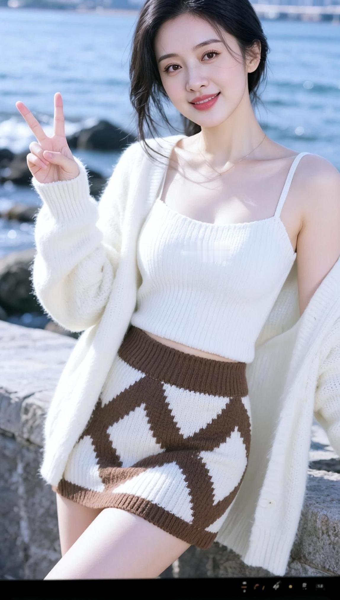 AI海滨清新照抖音ai创作女生拍照姿势个人写真拍摄颜值