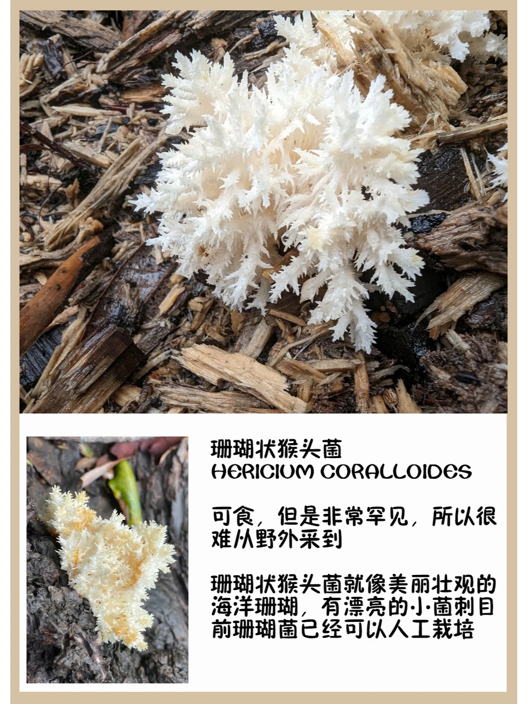 珊瑚状猴头菌 hericium coralloides 可食,但是非常罕见,所以很难从野外采到 珊瑚状猴头菌就像美丽壮观的海洋珊瑚,有漂亮的小菌刺目前珊瑚菌已经可以人工栽培