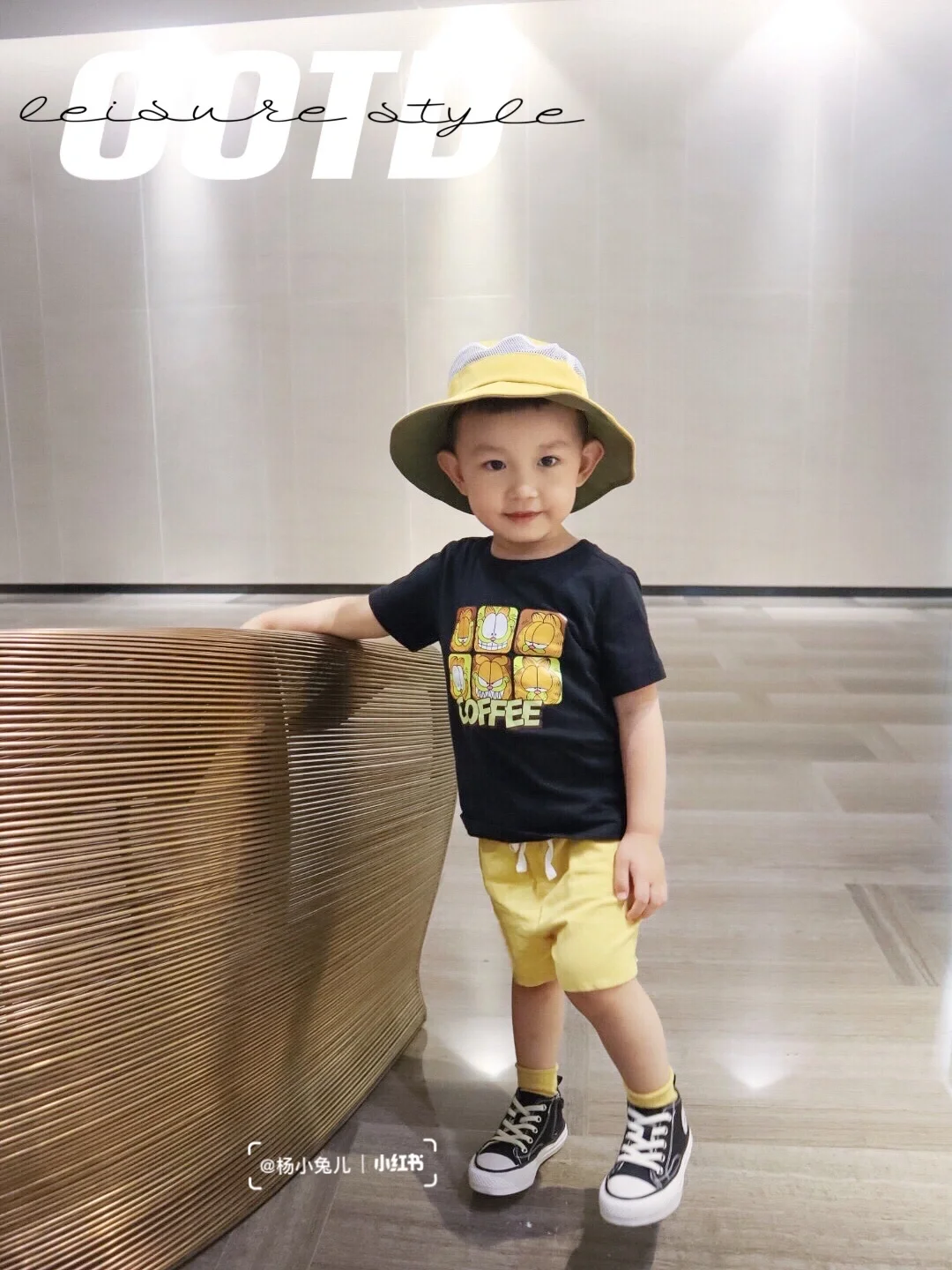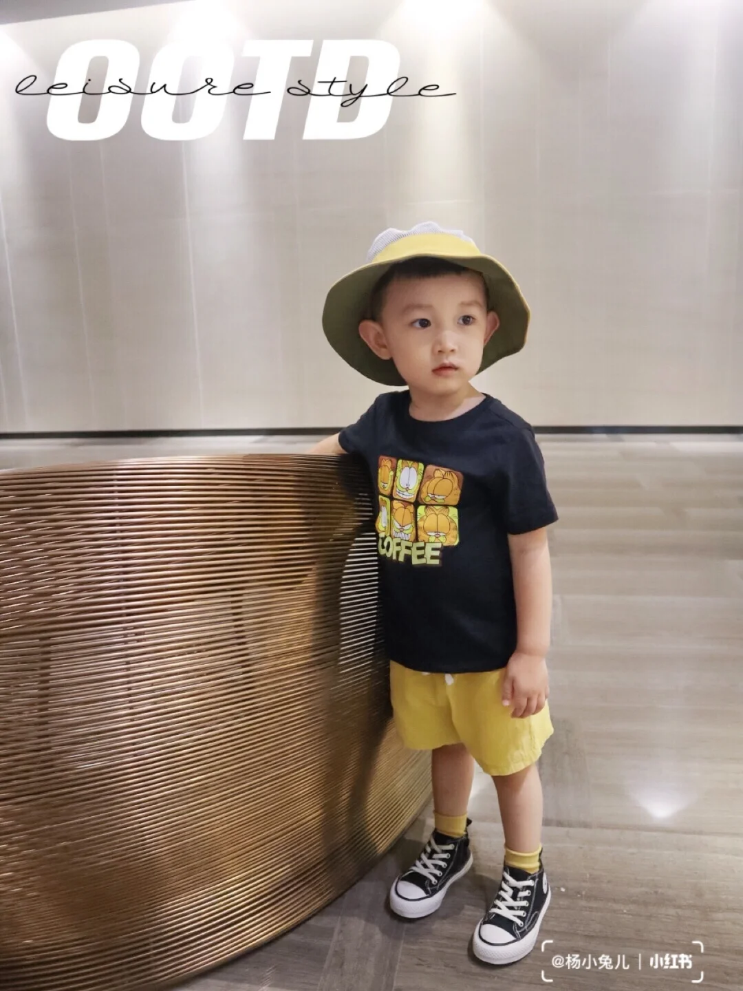 Hello~这里是雪球的穿搭频道🛎 姜黄色最近真的是爱了爱了~ 胸前的加菲猫印花颜色让整体搭配起来很好看~ 加上黄色的小袜子和帽子~ 奶帅奶帅的小潮男来啦❗️ 一身衣服加起来才50多块钱~ 便宜又好穿~搭配完全不费力❗️ . OOTD🍑 👕喵贝鹿 👖霖霖妈 . 男童穿搭|男宝穿搭|男娃穿搭|宝宝穿搭|不费力穿搭|夏日穿搭|萌娃日常|幼儿园穿搭|穿搭分享|每日穿搭|潮童穿搭